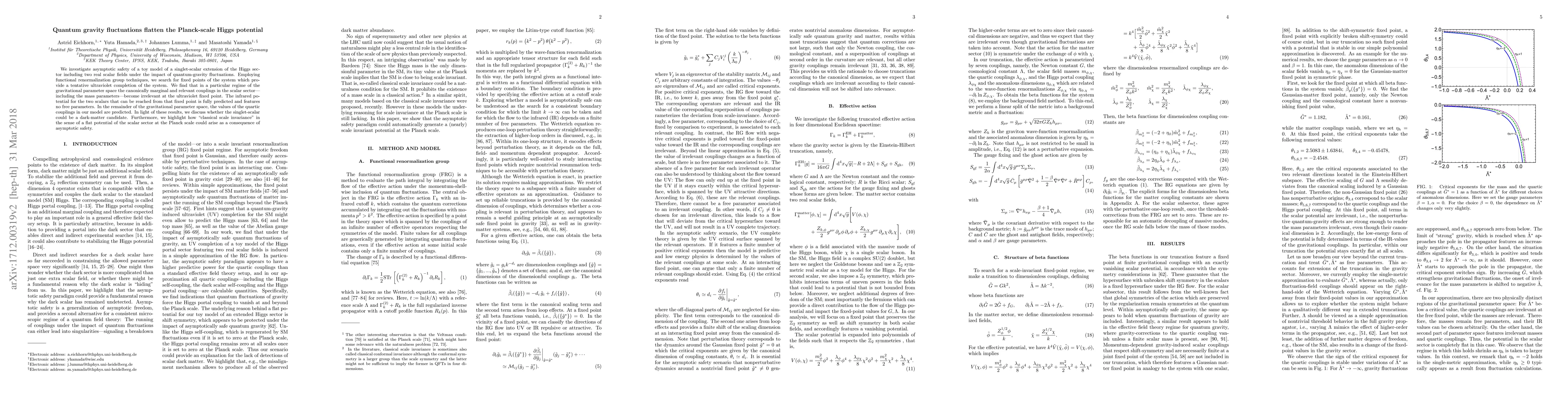 This research uses functional renormalization group techniques to study a Higgs sector extension with quantum-gravity fluctuations. It finds that in certain gravitational parameter regimes, scalar sector couplings become irrelevant at ultraviolet fixed points, predicting a flat scalar potential at the Planck scale. The study also explores the dark-matter candidate potential of the singlet-scalar and discusses classical scale invariance as a consequence of asymptotic safety.