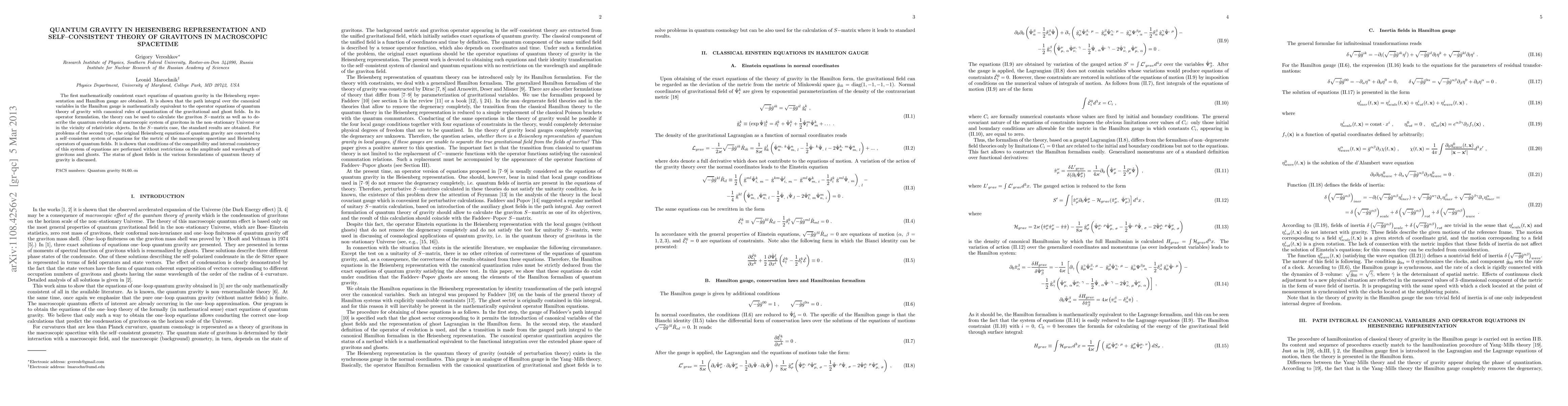 The first mathematically consistent exact equations of quantum gravity in the Heisenberg representation and Hamilton gauge are obtained. It is shown that the path integral over the canonical variables in the Hamilton gauge is mathematically equivalent to the operator equations of quantum theory of gravity with canonical rules of quantization of the gravitational and ghost fields. In its operator formulation, the theory can be used to calculate the graviton S-matrix as well as to describe the quantum evolution of macroscopic system of gravitons in the non-stationary Universe or in the vicinity of relativistic objects. In the S-matrix case, the standard results are obtained. For problems of the second type, the original Heisenberg equations of quantum gravity are converted to a self-consistent system of equations for the metric of the macroscopic spacetime and Heisenberg operators of quantum fields. It is shown that conditions of the compatibility and internal consistency of this system of equations are performed without restrictions on the amplitude and wavelength of gravitons and ghosts. The status of ghost fields in the various formulations of quantum theory of gravity is discussed.