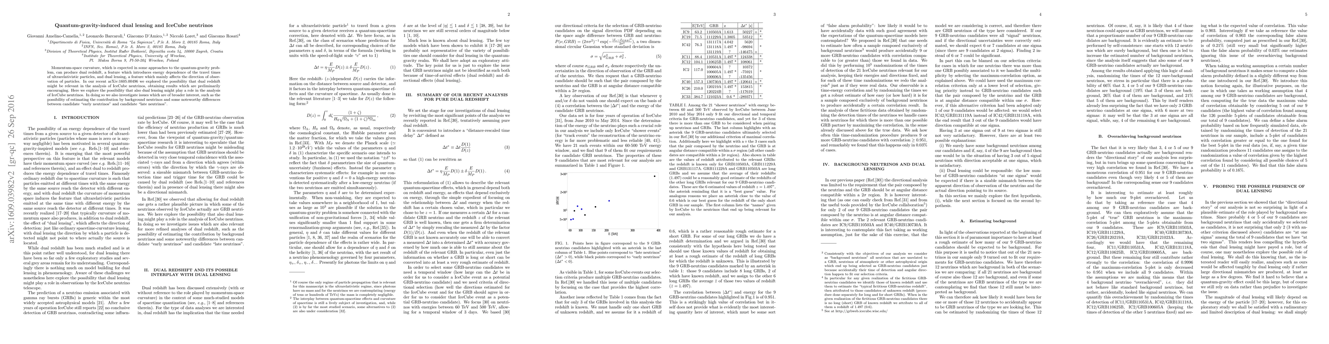 Momentum-space curvature, which is expected in some approaches to the quantum-gravity problem, can produce dual redshift, a feature which introduces energy dependence of the travel times of ultrarelativistic particles, and dual lensing, a feature which mainly affects the direction of observation of particles. In our recent arXiv:1605.00496 we explored the possibility that dual redshift might be relevant in the analysis of IceCube neutrinos, obtaining results which are preliminarily encouraging. Here we explore the possibility that also dual lensing might play a role in the analysis of IceCube neutrinos. In doing so we also investigate issues which are of broader interest, such as the possibility of estimating the contribution by background neutrinos and some noteworthy differences between candidate "early neutrinos" and candidate "late neutrinos".