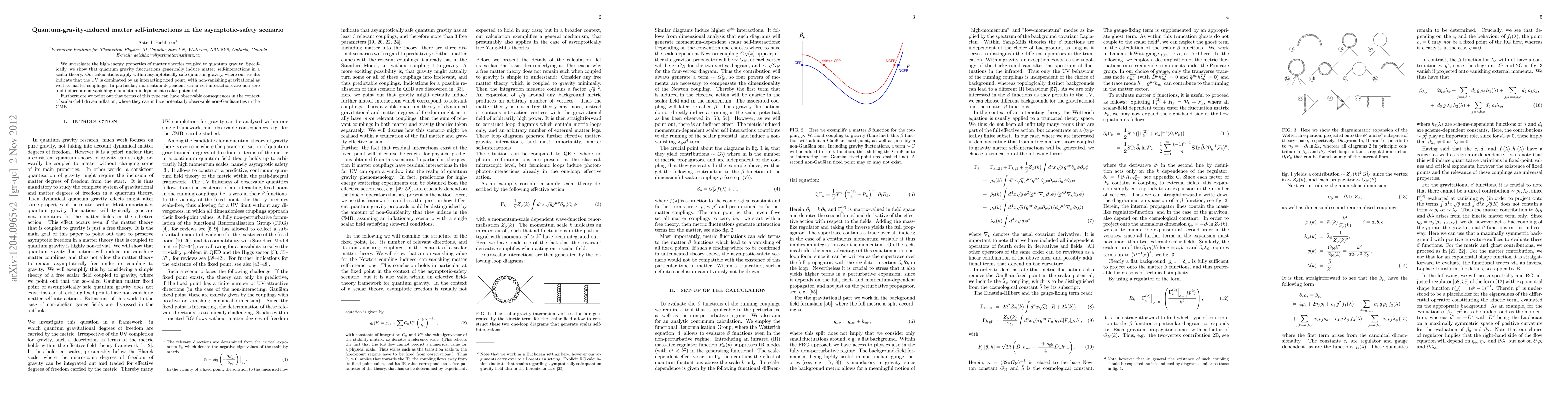 We investigate the high-energy properties of matter theories coupled to quantum gravity. Specifically, we show that quantum gravity fluctuations generically induce matter self-interactions in a scalar theory. Our calculations apply within asymptotically safe quantum gravity, where our results indicate that the UV is dominated by an interacting fixed point, with non-vanishing gravitational as well as matter couplings. In particular, momentum-dependent scalar self-interactions are non-zero and induce a non-vanishing momentum-independent scalar potential. Furthermore we point out that terms of this type can have observable consequences in the context of scalar-field driven inflation, where they can induce potentially observable non-Gaussianities in the CMB.