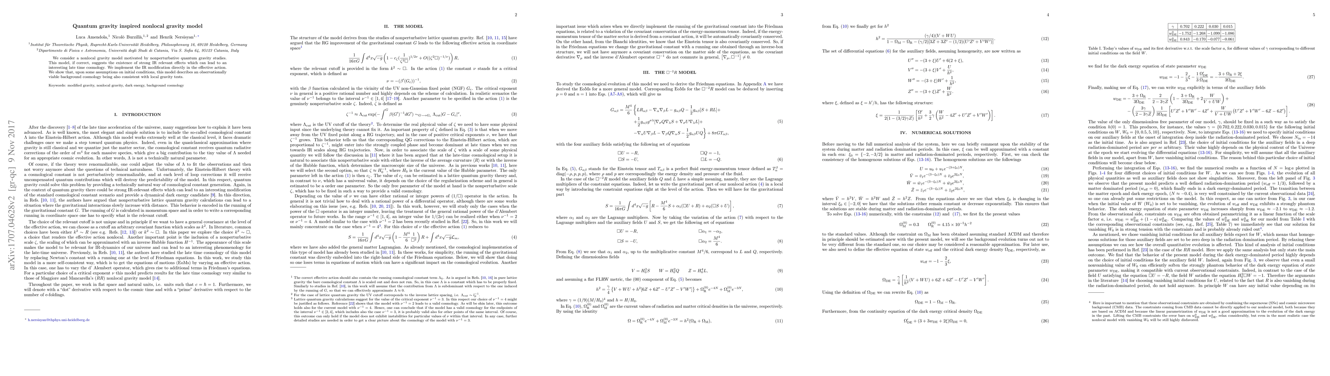 This paper proposes a nonlocal gravity model inspired by nonperturbative Quantum Gravity, suggesting strong infrared relevant effects that could influence late-time cosmology. The model, implemented in the effective action, is shown to provide an observationally viable background cosmology consistent with local gravity tests.