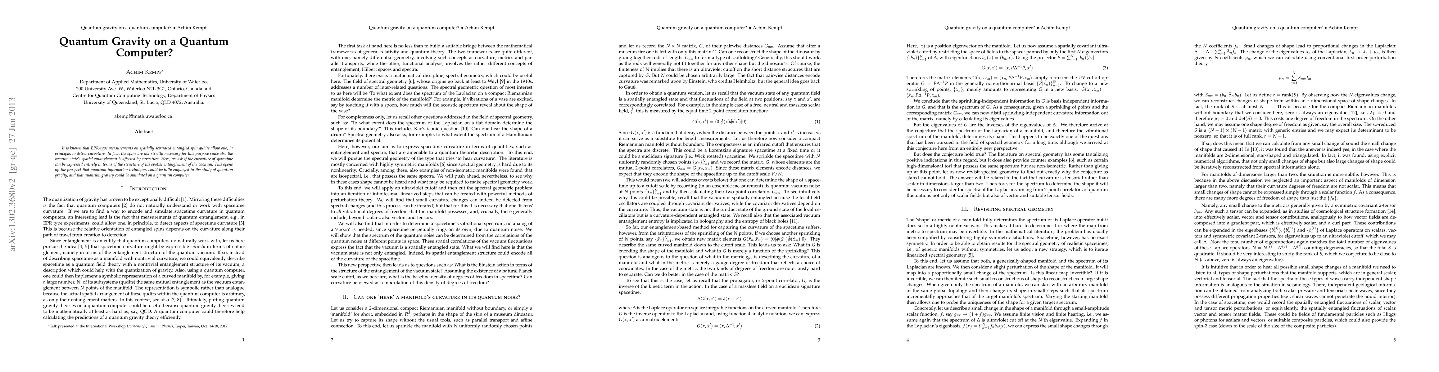 EPR-type measurements on spatially separated entangled spin qubits allow one, in principle, to detect curvature. Also the entanglement of the vacuum state is affected by curvature. Here, we ask if the curvature of spacetime can be expressed entirely in terms of the spatial entanglement structure of the vacuum. This would open up the prospect that quantum gravity could be simulated on a quantum computer and that quantum information techniques could be fully employed in the study of quantum gravity.