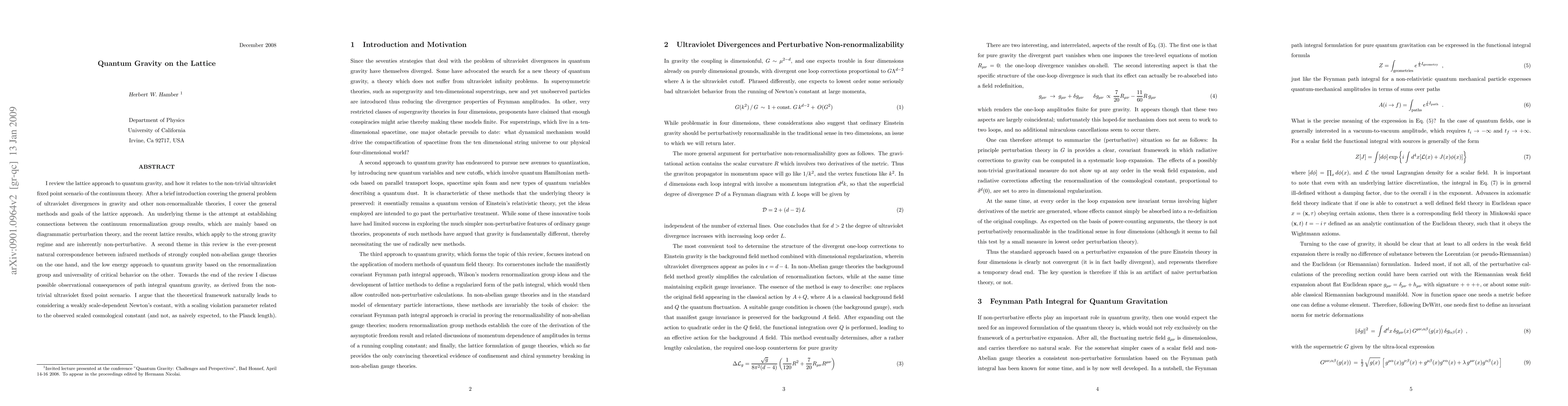 I review the lattice approach to quantum gravity, and how it relates to the non-trivial ultraviolet fixed point scenario of the continuum theory. After a brief introduction covering the general problem of ultraviolet divergences in gravity and other non-renormalizable theories, I cover the general methods and goals of the lattice approach. An underlying theme is the attempt at establishing connections between the continuum renormalization group results, which are mainly based on diagrammatic perturbation theory, and the recent lattice results, which apply to the strong gravity regime and are inherently non-perturbative. A second theme in this review is the ever-present natural correspondence between infrared methods of strongly coupled non-abelian gauge theories on the one hand, and the low energy approach to quantum gravity based on the renormalization group and universality of critical behavior on the other. Towards the end of the review I discuss possible observational consequences of path integral quantum gravity, as derived from the non-trivial ultraviolet fixed point scenario. I argue that the theoretical framework naturally leads to considering a weakly scale-dependent Newton's costant, with a scaling violation parameter related to the observed scaled cosmological constant (and not, as naively expected, to the Planck length).