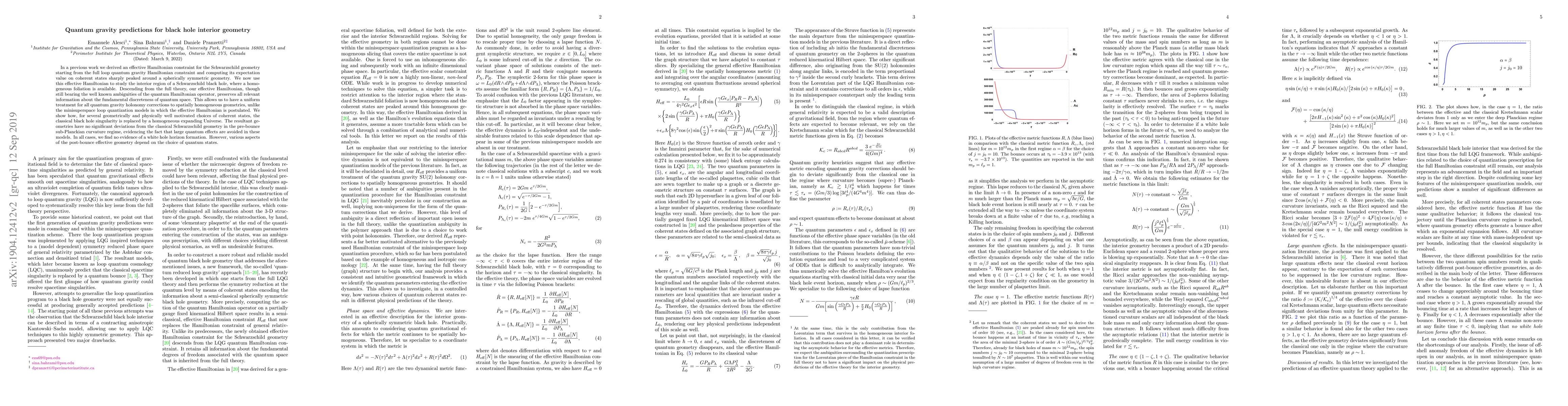 In a previous work we derived an effective Hamiltonian constraint for the Schwarzschild geometry starting from the full loop quantum gravity Hamiltonian constraint and computing its expectation value on coherent states sharply peaked around a spherically symmetric geometry. We now use this effective Hamiltonian to study the interior region of a Schwarzschild black hole, where a homogeneous foliation is available. Descending from the full theory, our effective Hamiltonian, though still bearing the well known ambiguities of the quantum Hamiltonian operator, preserves all relevant information about the fundamental discreteness of quantum space. This allows us to have a uniform treatment for all quantum gravity holonomy corrections to spatially homogeneous geometries, unlike the minisuperspace loop quantization models in which the effective Hamiltonian is postulated. We show how, for several geometrically and physically well motivated choices of coherent states, the classical black hole singularity is replaced by a homogeneous expanding Universe. The resultant geometries have no significant deviations from the classical Schwarzschild geometry in the pre-bounce sub-Planckian curvature regime, evidencing the fact that large quantum effects are avoided in these models. In all cases, we find no evidence of a white hole horizon formation. However, various aspects of the post-bounce effective geometry depend on the choice of quantum states.