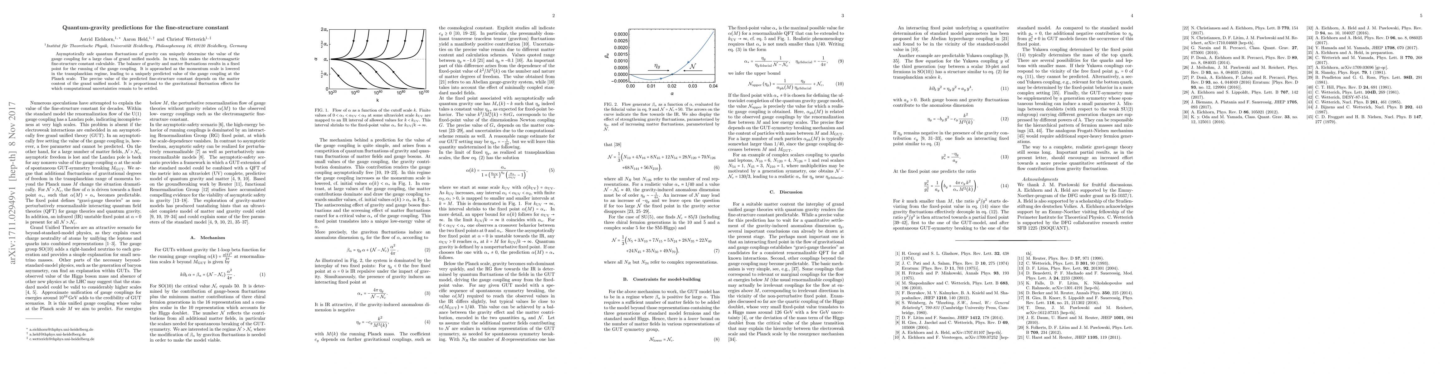 Asymptotically safe quantum fluctuations of gravity can uniquely determine the value of the gauge coupling for a large class of grand unified models. In turn, this makes the electromagnetic fine-structure constant calculable. The balance of gravity and matter fluctuations results in a fixed point for the running of the gauge coupling. It is approached as the momentum scale is lowered in the transplanckian regime, leading to a uniquely predicted value of the gauge coupling at the Planck scale. The precise value of the predicted fine-structure constant depends on the matter content of the grand unified model. It is proportional to the gravitational fluctuation effects for which computational uncertainties remain to be settled.