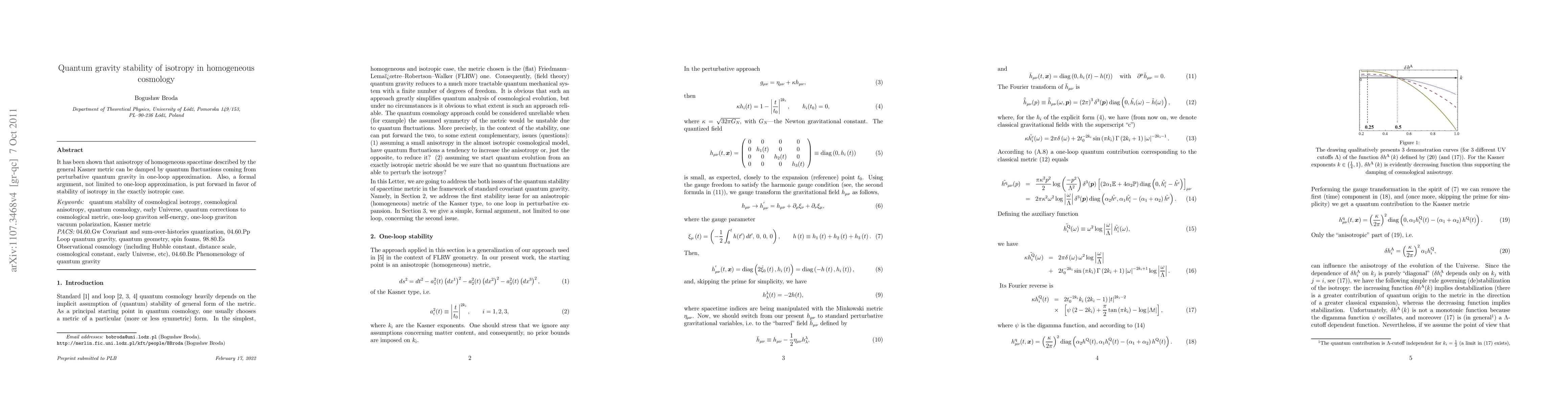 It has been shown that anisotropy of homogeneous spacetime described by the general Kasner metric can be damped by quantum fluctuations coming from perturbative quantum gravity in one-loop approximation. Also, a formal argument, not limited to one-loop approximation, is put forward in favor of stability of isotropy in the exactly isotropic case.