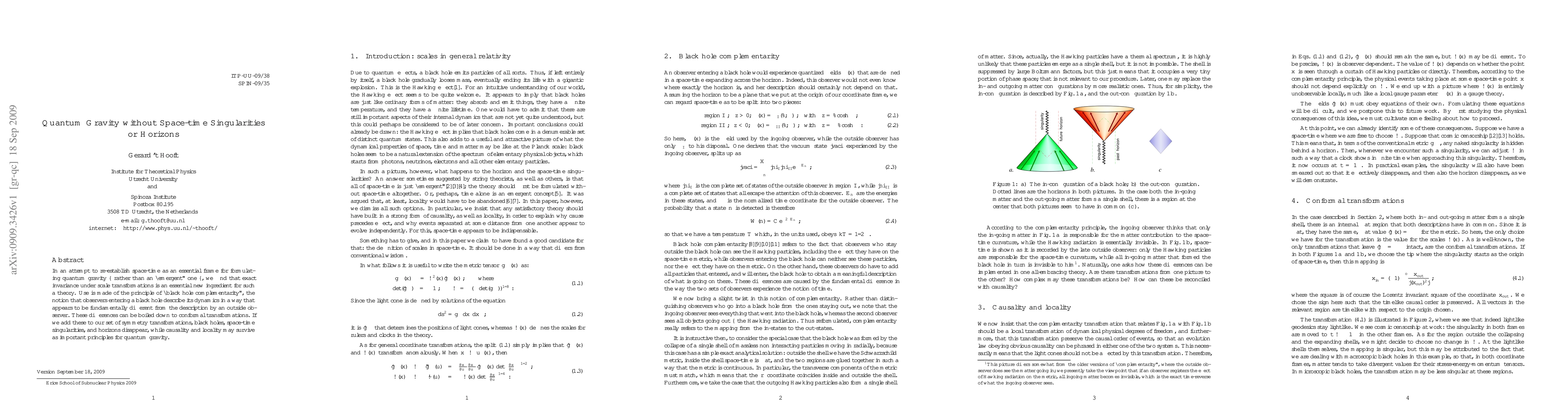 In an attempt to re-establish space-time as an essential frame for formulating quantum gravity - rather than an "emergent" one -, we find that exact invariance under scale transformations is an essential new ingredient for such a theory. Use is made of the principle of "black hole complementarity", the notion that observers entering a black hole describe its dynamics in a way that appears to be fundamentally different from the description by an outside observer. These differences can be boiled down to conformal transformations. If we add these to our set of symmetry transformations, black holes, space-time singularities, and horizons disappear, while causality and locality may survive as important principles for quantum gravity.
