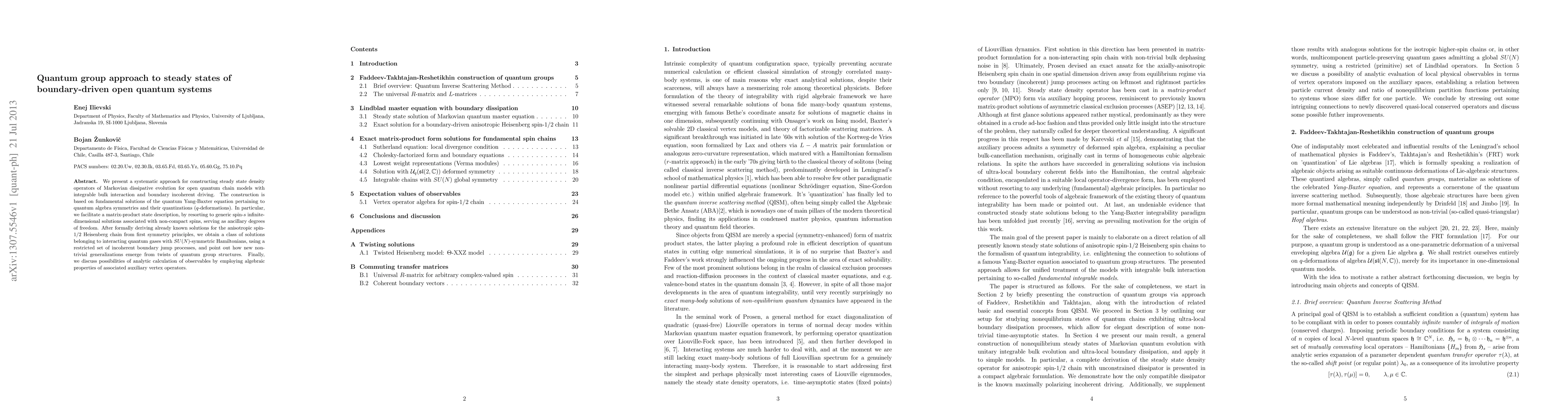 We present a systematic approach for constructing steady state density operators of Markovian dissipative evolution for open quantum chain models with integrable bulk interaction and boundary incoherent driving. The construction is based on fundamental solutions of the quantum Yang-Baxter equation pertaining to quantum algebra symmetries and their quantizations (q-deformations). In particular, we facilitate a matrix-product state description, by resorting to generic spin-s infinite-dimensional solutions associated with non-compact spins, serving as ancillary degrees of freedom. After formally deriving already known solutions for the anisotropic spin-1/2 Heisenberg chain from first symmetry principles, we obtain a class of solutions belonging to interacting quantum gases with SU(N)-symmetric Hamiltonians, using a restricted set of incoherent boundary jump processes, and point out how new non-trivial generalizations emerge from twists of quantum group structures. Finally, we discuss possibilities of analytic calculation of observables by employing algebraic properties of associated auxiliary vertex operators.