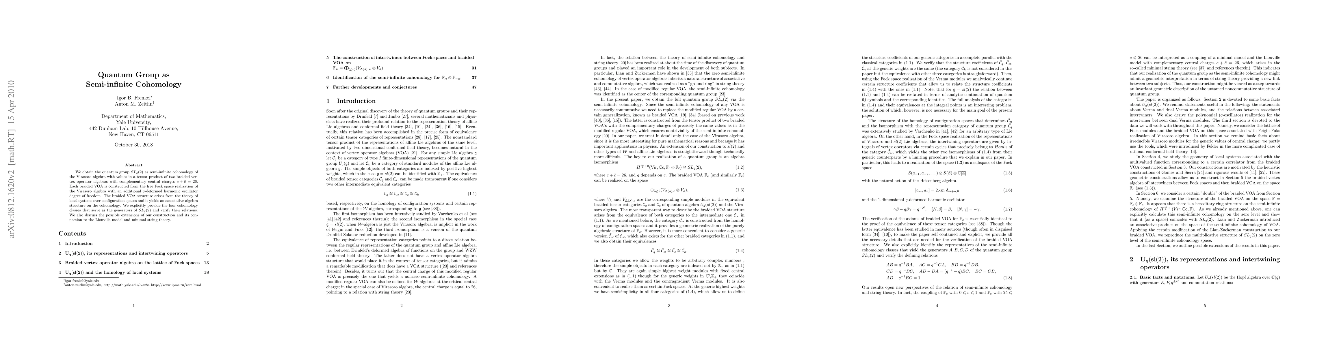 We obtain the quantum group $SL_q(2)$ as semi-infinite cohomology of the Virasoro algebra with values in a tensor product of two braided vertex operator algebras with complementary central charges $c+\bar{c}=26$. Each braided VOA is constructed from the free Fock space realization of the Virasoro algebra with an additional q-deformed harmonic oscillator degree of freedom. The braided VOA structure arises from the theory of local systems over configuration spaces and it yields an associative algebra structure on the cohomology. We explicitly provide the four cohomology classes that serve as the generators of $SL_q(2)$ and verify their relations. We also discuss the possible extensions of our construction and its connection to the Liouville model and minimal string theory.