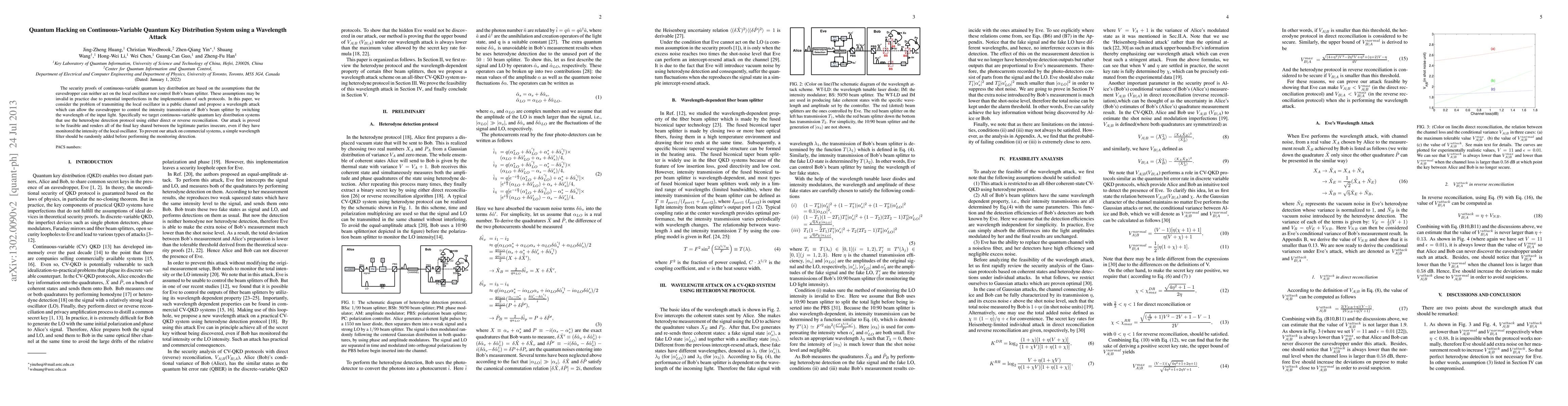 This paper investigates a quantum hacking attack on continuous-variable quantum key distribution systems, demonstrating how an eavesdropper can manipulate the local oscillator's wavelength to control Bob's beam splitter, compromising the security of the final shared key. To mitigate this threat, the authors recommend incorporating a wavelength filter before monitoring.