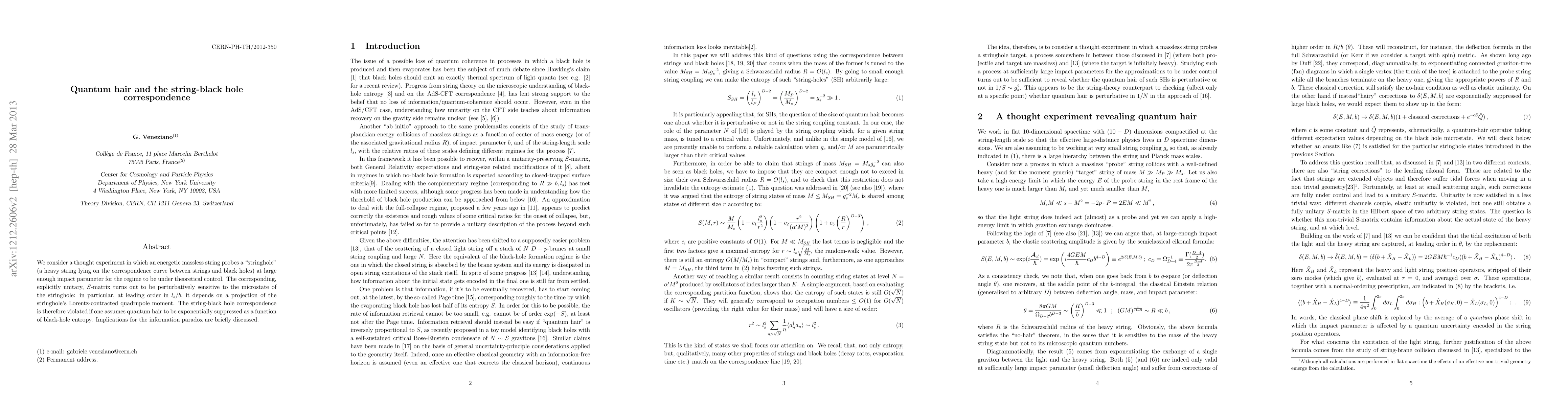 We consider a thought experiment in which an energetic massless string probes a "stringhole" (a heavy string lying on the correspondence curve between strings and black holes) at large enough impact parameter for the regime to be under theoretical control. The corresponding, explicitly unitary, $S$-matrix turns out to be perturbatively sensitive to the microstate of the stringhole: in particular, at leading order in $l_s/b$, it depends on a projection of the stringhole's Lorentz-contracted quadrupole moment. The string-black hole correspondence is therefore violated if one assumes quantum hair to be exponentially suppressed as a function of black-hole entropy. Implications for the information paradox are briefly discussed.