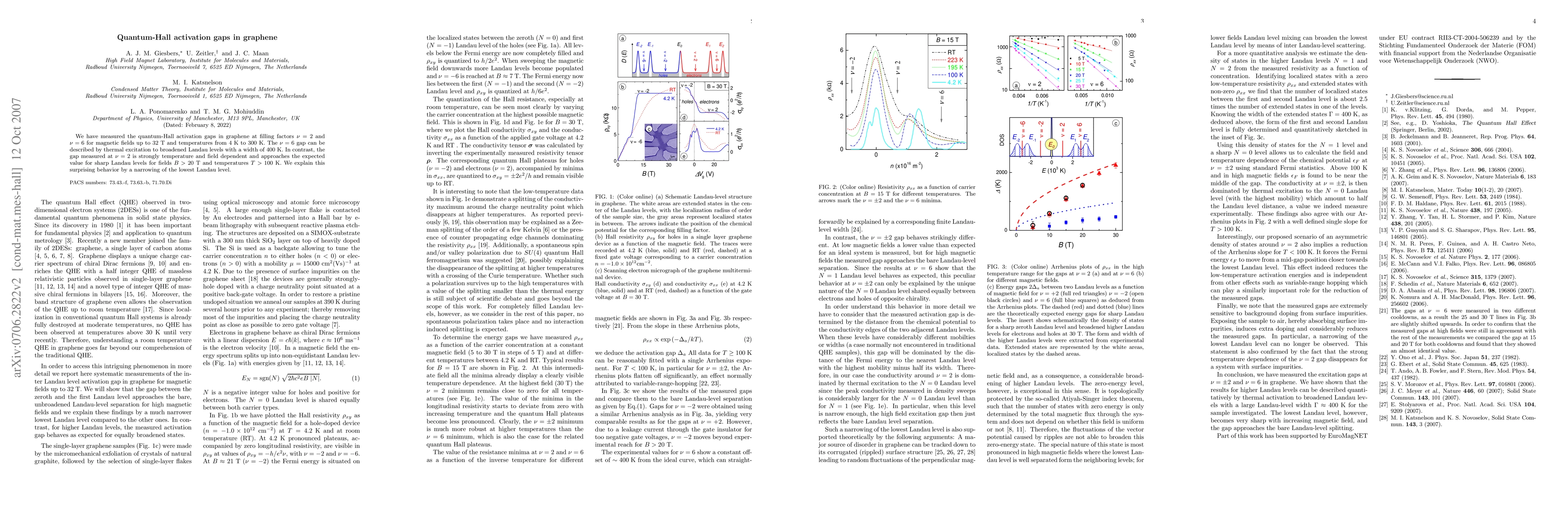 We have measured the quantum-Hall activation gaps in graphene at filling factors $\nu=2$ and $\nu=6$ for magnetic fields up to 32 T and temperatures from 4 K to 300 K. The $\nu =6$ gap can be described by thermal excitation to broadened Landau levels with a width of 400 K. In contrast, the gap measured at $\nu=2$ is strongly temperature and field dependent and approaches the expected value for sharp Landau levels for fields $B > 20$ T and temperatures $T > 100$ K. We explain this surprising behavior by a narrowing of the lowest Landau level.