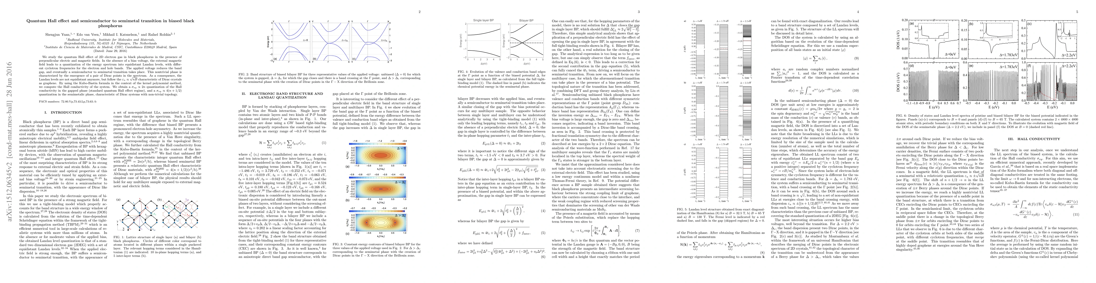 Researchers study the quantum Hall effect in black phosphorus under electric and magnetic fields, discovering a semiconductor-to-semimetal transition that leads to Dirac points and altered Landau levels. The findings reveal new quantization patterns in Hall conductivity.