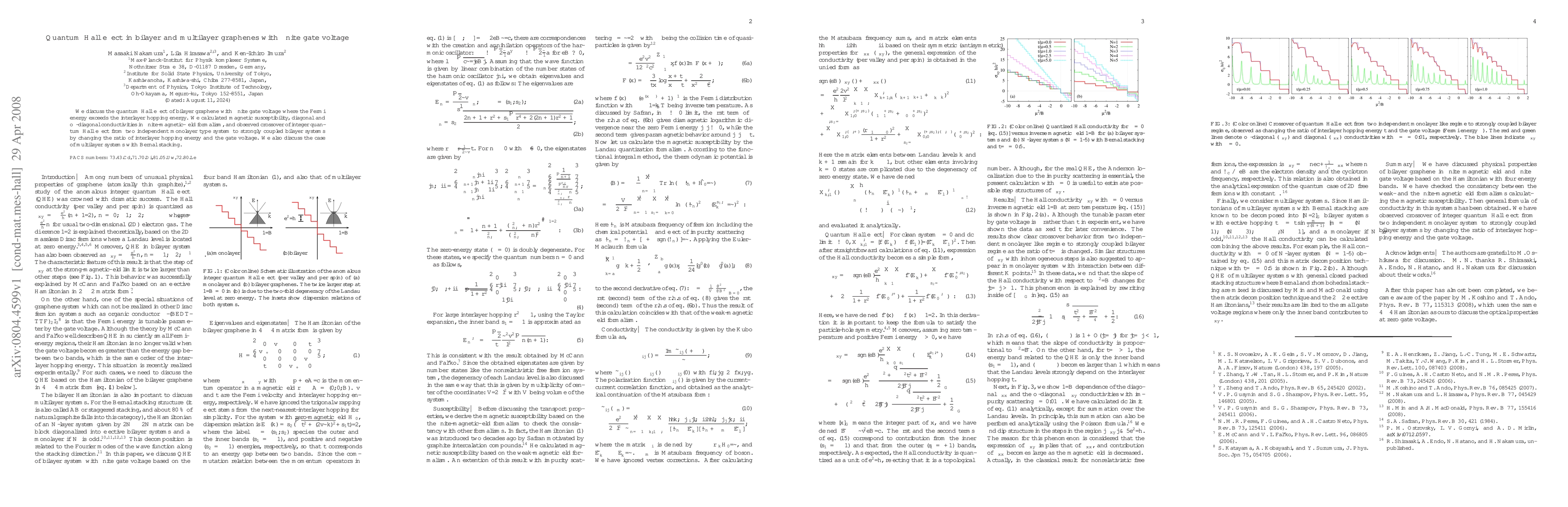 Summary: This paper investigates the quantum Hall effect in bilayer and multilayer graphenes under finite gate voltage, revealing a transition from monolayer-like to strongly coupled bilayer behavior as the interlayer hopping energy and gate voltage ratio change, and extends the analysis to Bernal stacked multilayer systems.
