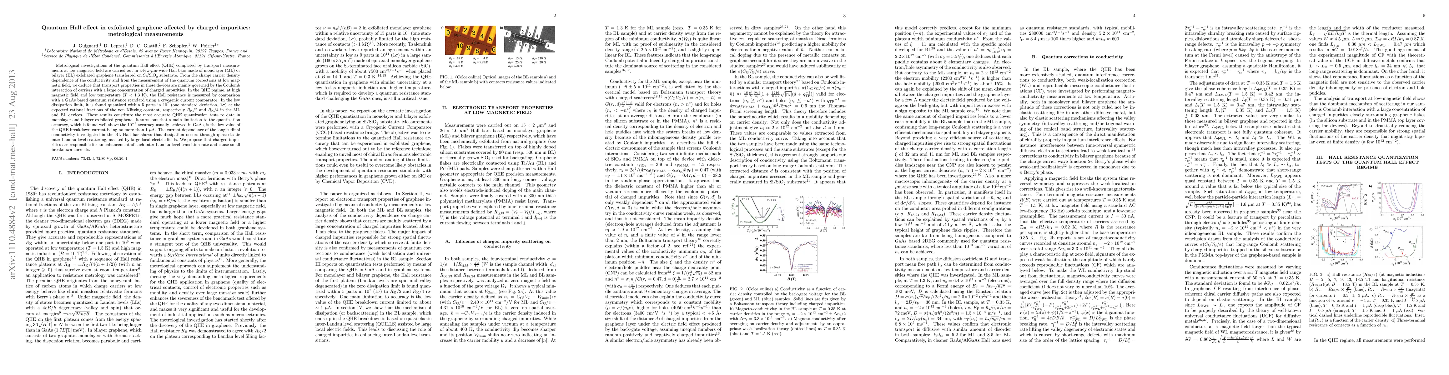 This study investigates the quantum Hall effect in monolayer and bilayer exfoliated graphene, revealing that transport properties are significantly influenced by Coulomb interactions with charged impurities. The Hall resistance is found to be quantized with high accuracy, but limited by low breakdown currents and inter-Landau level scattering, suggesting impurities enhance these transitions.