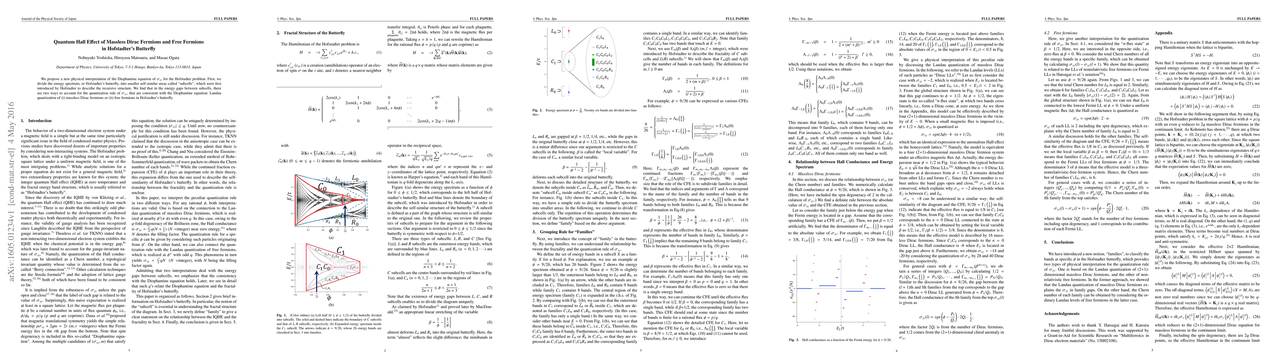 This paper proposes a new interpretation of the Diophantine equation for $\sigma_{xy}$ in Hofstadter's butterfly, suggesting that the quantization rule can be explained by Landau quantization in either massless Dirac fermions or free fermions within the recursive structure of subcells.