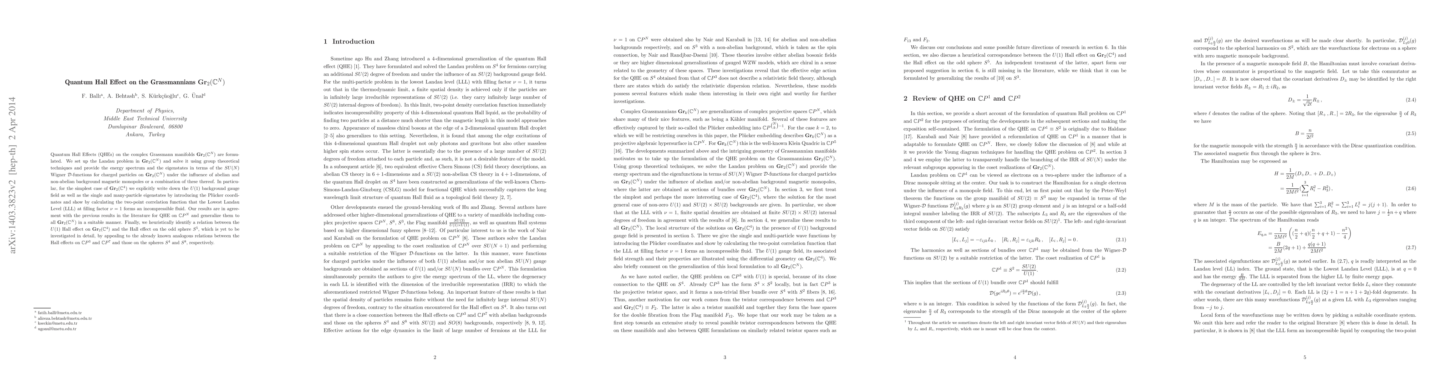 This paper formulates the Quantum Hall Effect on the Grassmannian $\mathbf{Gr}_2(\mathbb{C}^N)$ and solves it using group theory, providing the energy spectrum and eigenstates in terms of $SU(N)$ Wigner ${\cal D}$-functions. It demonstrates the incompressible nature of the Lowest Landau Level at $\nu = 1$ and identifies a potential relation between the $U(1)$ Hall effect on $\mathbf{Gr}_2(\mathbb{C}^4)$ and the Hall effect on $S^5$.