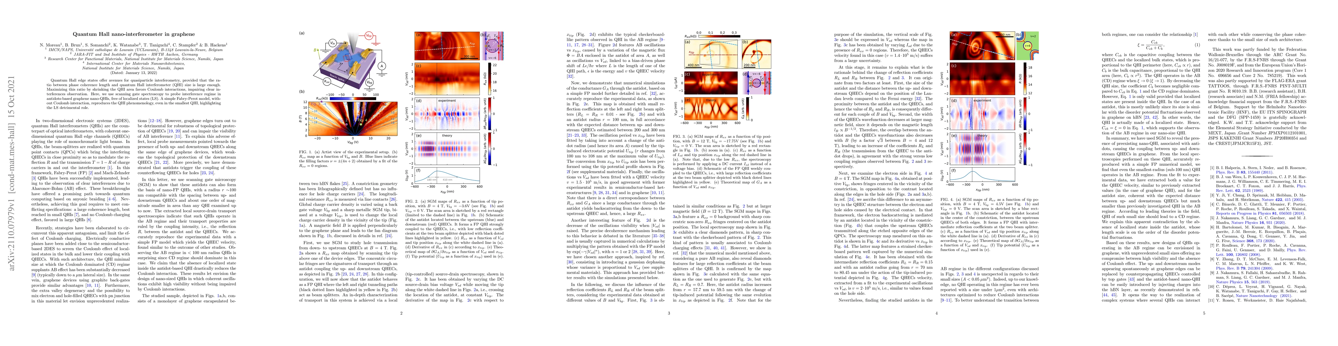 This paper investigates quantum Hall edge states in graphene nano-interferometers, demonstrating that a simple Fabry-Perot model can reproduce interference phenomena without considering Coulomb interactions, emphasizing the adverse effect of localized states on clear interference observations.
