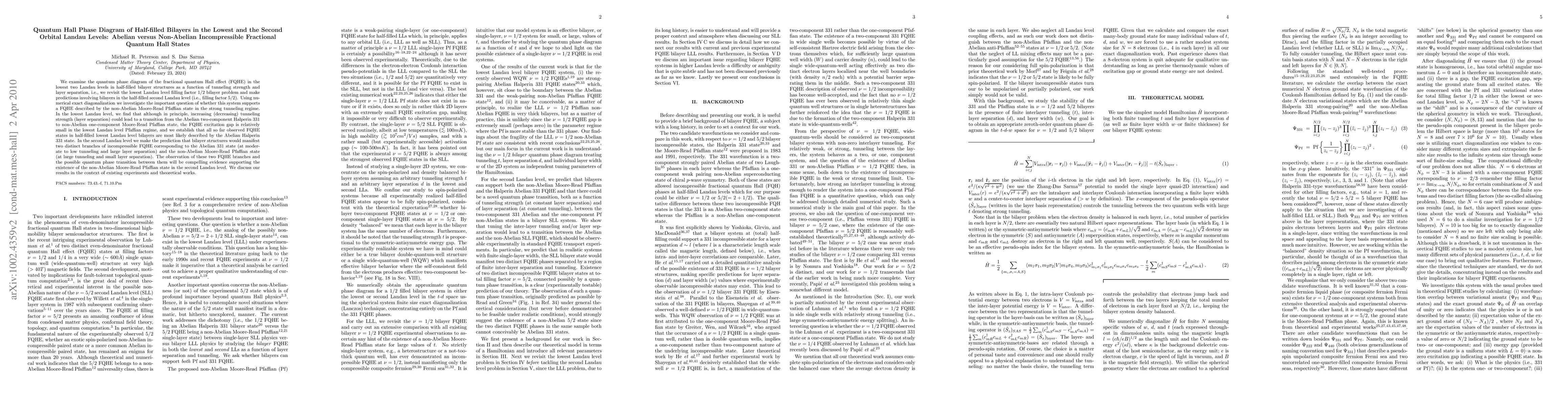 This paper explores the quantum Hall phase diagram of half-filled bilayers in the lowest and second Landau levels, predicting that the lowest level primarily supports the Abelian Halperin 331 state, while the second level could exhibit both Abelian and non-Abelian incompressible states, including the Moore-Read Pfaffian.