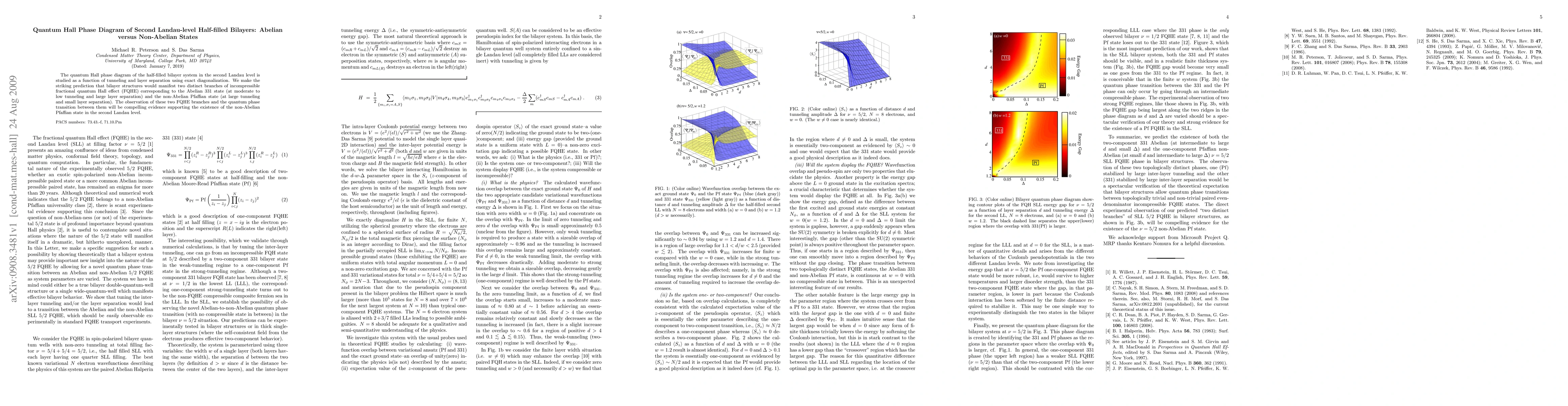 The study examines the quantum Hall phase diagram for a half-filled bilayer system in the second Landau level, predicting two incompressible fractional quantum Hall effect branches: an Abelian 331 state and a non-Abelian Pfaffian state, with the latter indicating a quantum phase transition.
