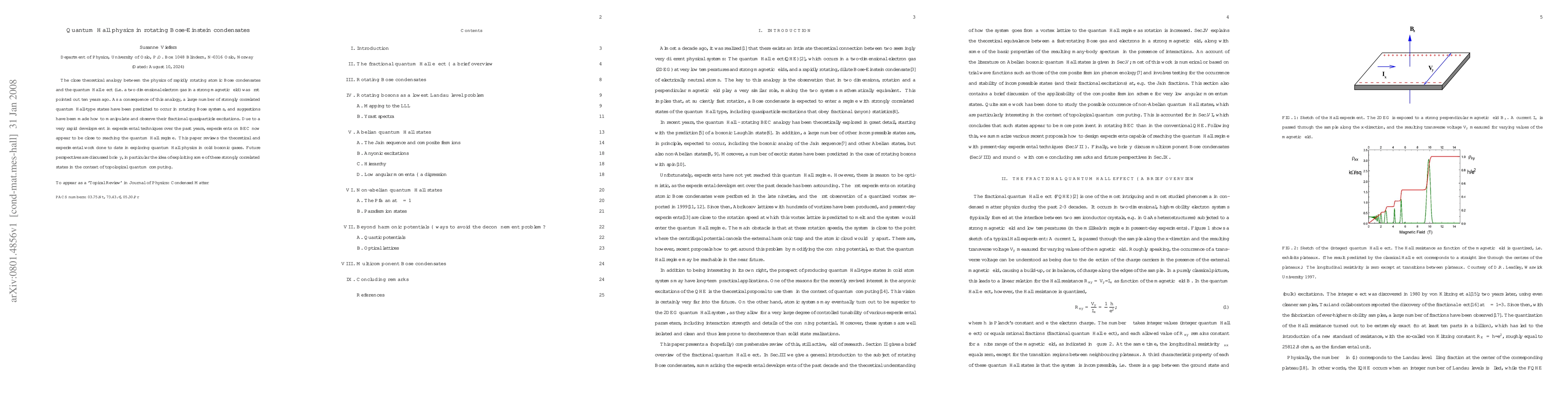 This paper reviews the theoretical and experimental exploration of quantum Hall physics in rotating Bose-Einstein condensates, highlighting the analogy between these systems and two-dimensional electron gases in strong magnetic fields, and discussing potential applications in topological quantum computing.