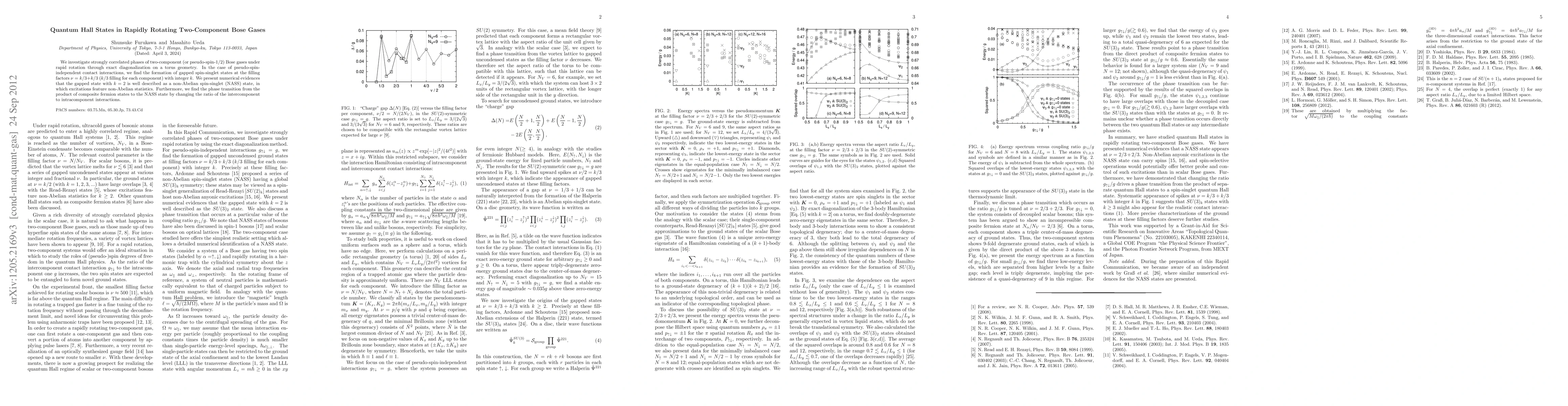 Researchers study two-component Bose gases under rapid rotation, finding gapped spin-singlet states with non-Abelian statistics at specific filling factors, which exhibit unique quantum behavior.