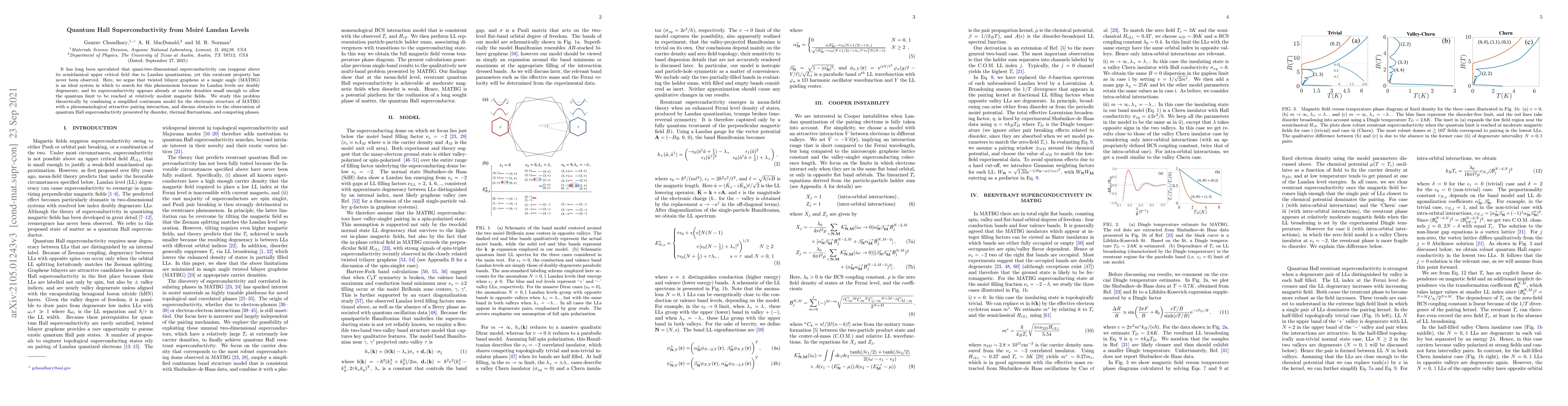 It has long been speculated that quasi-two-dimensional superconductivity can reappear above its semiclassical upper critical field due to Landau quantization, yet this reentrant property has never been observed. Here, we argue that twisted bilayer graphene at a magic angle (MATBG) is an ideal system in which to search for this phenomenon because its Landau levels are doubly degenerate, and its superconductivity appears already at carrier densities small enough to allow the quantum limit to be reached at relatively modest magnetic fields. We study this problem theoretically by combining a simplified continuum model for the electronic structure of MATBG with a phenomenological attractive pairing interaction, and discuss obstacles to the observation of quantum Hall superconductivity presented by disorder, thermal fluctuations, and competing phases.