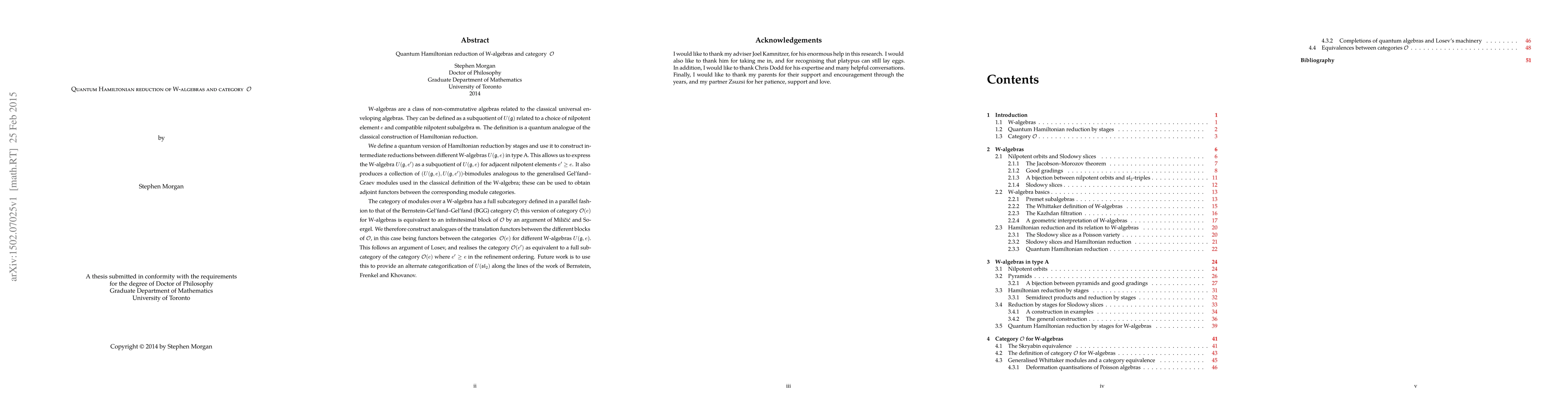 This paper defines a quantum version of Hamiltonian reduction for W-algebras, constructing intermediate reductions between different W-algebras in type A and establishing a category O for W-algebras equivalent to an infinitesimal block of O, with functors analogous to translation functors between different blocks.
