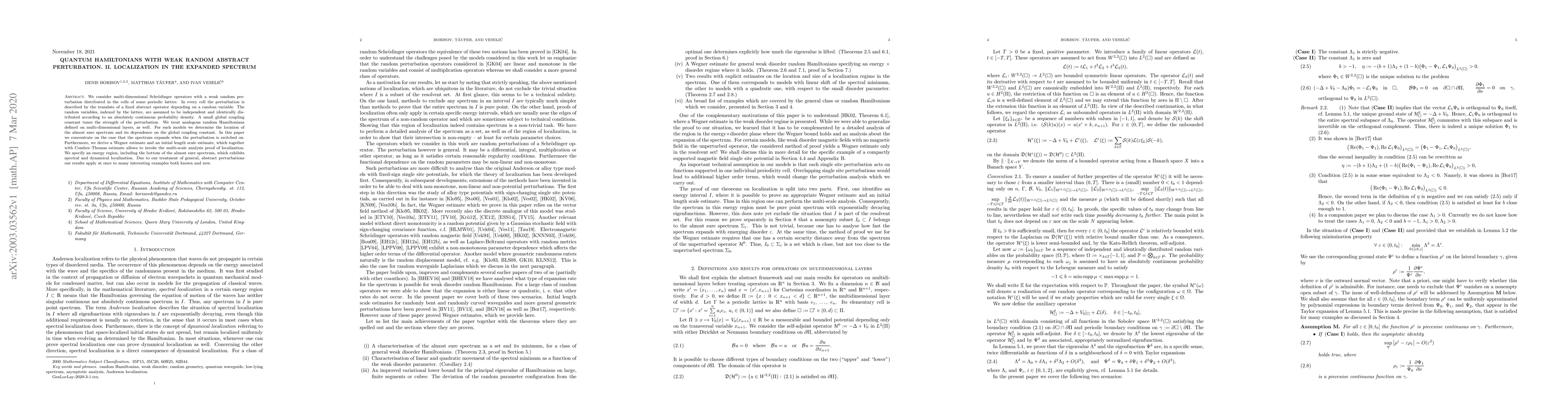 We consider multi-dimensional Schr\"odinger operators with a weak random perturbation distributed in the cells of some periodic lattice. In every cell the perturbation is described by the translate of a fixed abstract operator depending on a random variable. The random variables, indexed by the lattice, are assumed to be independent and identically distributed according to an absolutely continuous probability density. A small global coupling constant tunes the strength of the perturbation. We treat analogous random Hamiltonians defined on multi-dimensional layers, as well. For such models we determine the location of the almost sure spectrum and its dependence on the global coupling constant. In this paper we concentrate on the case that the spectrum expands when the perturbation is switched on. Furthermore, we derive a Wegner estimate and an initial length scale estimate, which together with Combes--Thomas estimate allows to invoke the multi-scale analysis proof of localization. We specify an energy region, including the bottom of the almost sure spectrum, which exhibits spectral and dynamical localization. Due to our treatment of general, abstract perturbations our results apply at once to many interesting examples both known and new.