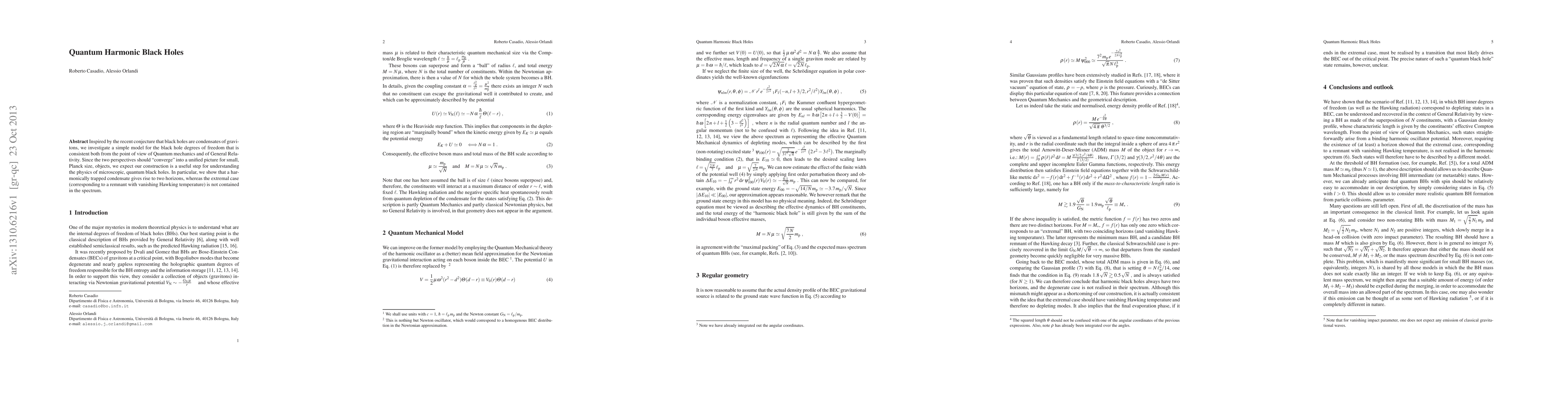 Inspired by the recent conjecture that black holes are condensates of gravitons, we investigate a simple model for the black hole degrees of freedom that is consistent both from the point of view of Quantum mechanics and of General Relativity. Since the two perspectives should "converge" into a unified picture for small, Planck size, objects, we expect our construction is a useful step for understanding the physics of microscopic, quantum black holes. In particular, we show that a harmonically trapped condensate gives rise to two horizons, whereas the extremal case (corresponding to a remnant with vanishing Hawking temperature) is not contained in the spectrum.