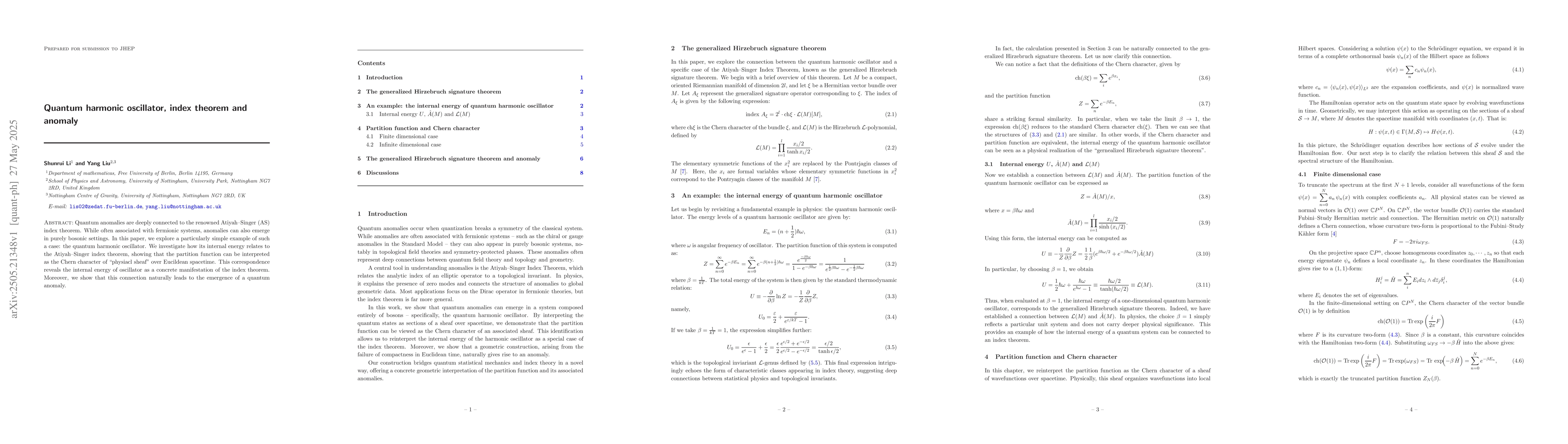 Demonstrating the correspondence between the partition function of a quantum harmonic oscillator and the Atiyah-Singer index theorem, revealing a quantum anomaly in this bosonic system.