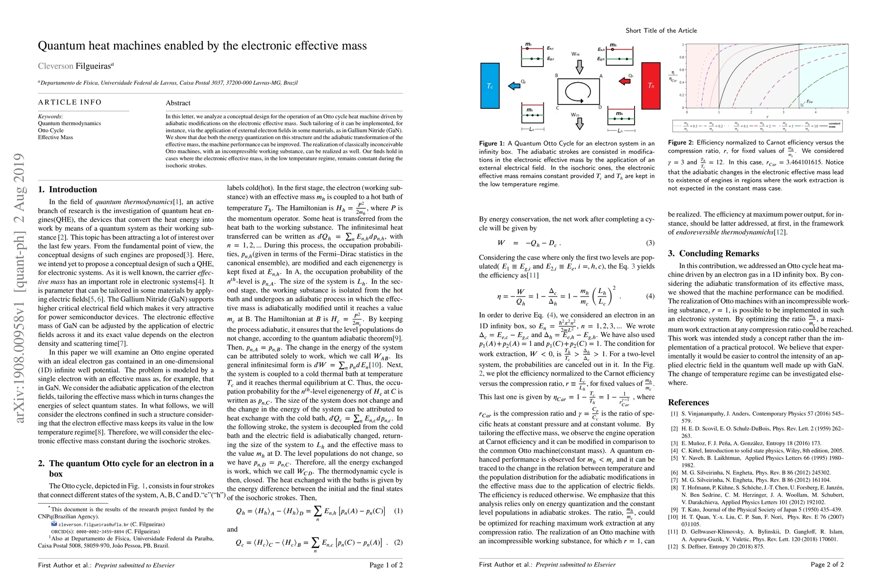 In this letter, we analyze a conceptual design for the operation of an Otto cycle heat machine driven by adiabatic modifications on the electronic effective mass. Such tailoring of it can be implemented, for instance, via the application of external electron fields in some materials, as in Gallium Nitride (GaN). We show that due both the energy quantization on this structure and the adiabatic transformation of the effective mass, the machine performance can be improved. The realization of classically inconceivable Otto machines, with an incompressible working substance, can be realized as well. Our finds hold in cases where the electronic effective mass, in the low temperature regime, remains constant during the isochoric strokes.