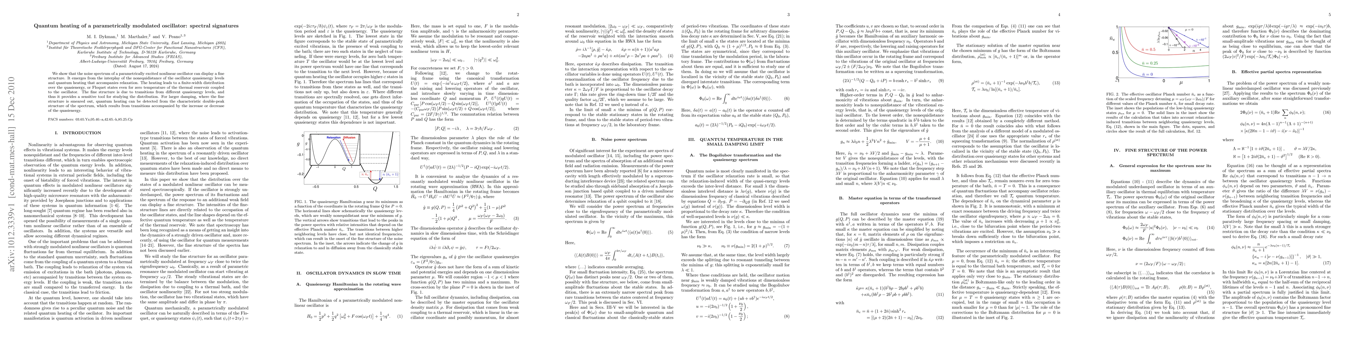 The paper presents a detailed analysis of quantum heating in parametrically modulated oscillators, introducing a method to observe the effects through spectral signatures, and extending previous work on quantum fluctuations in modulated systems.