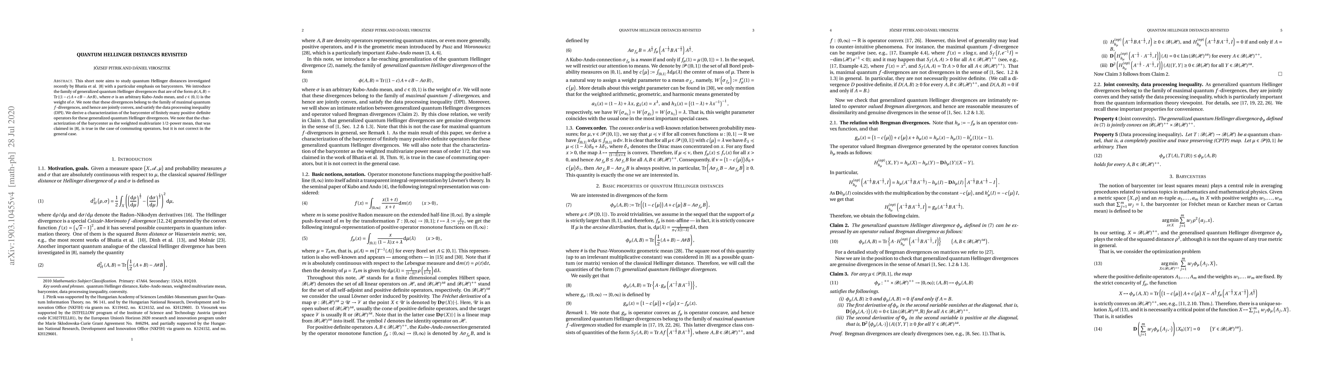 This paper revisits quantum Hellinger distances, introducing generalized forms and proving their joint convexity and data processing inequality. It also corrects the characterization of the barycenter for these divergences, showing it holds only for commuting positive definite operators.