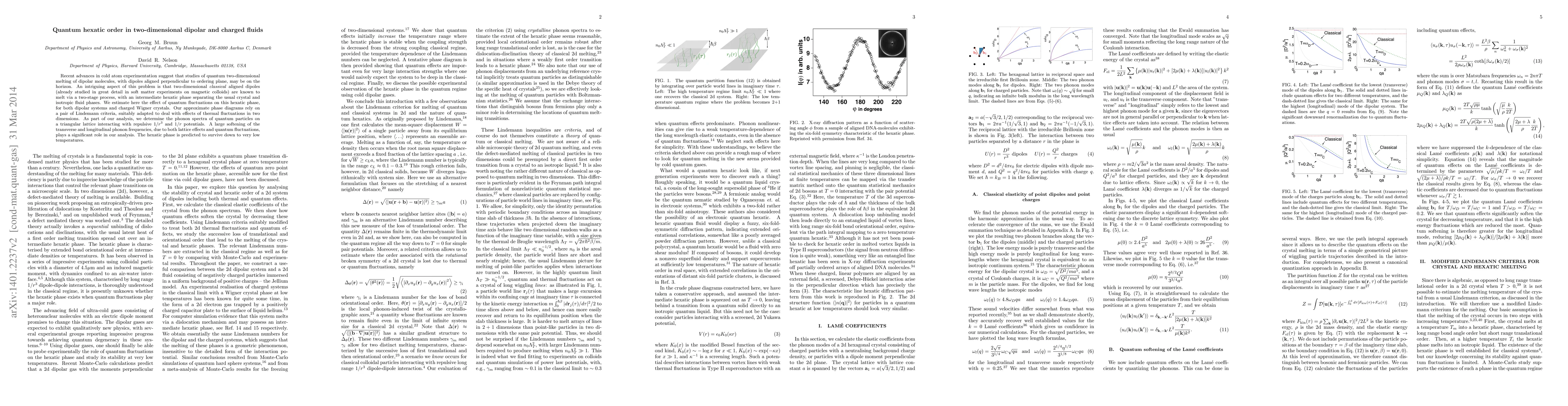 This paper investigates the quantum effects on the hexatic phase in two-dimensional dipolar and charged fluids, predicting that quantum fluctuations significantly soften phonon frequencies and maintain the hexatic order even at low temperatures. The study employs adapted Lindemann criteria and analyzes phonon spectra for triangular lattice interactions.