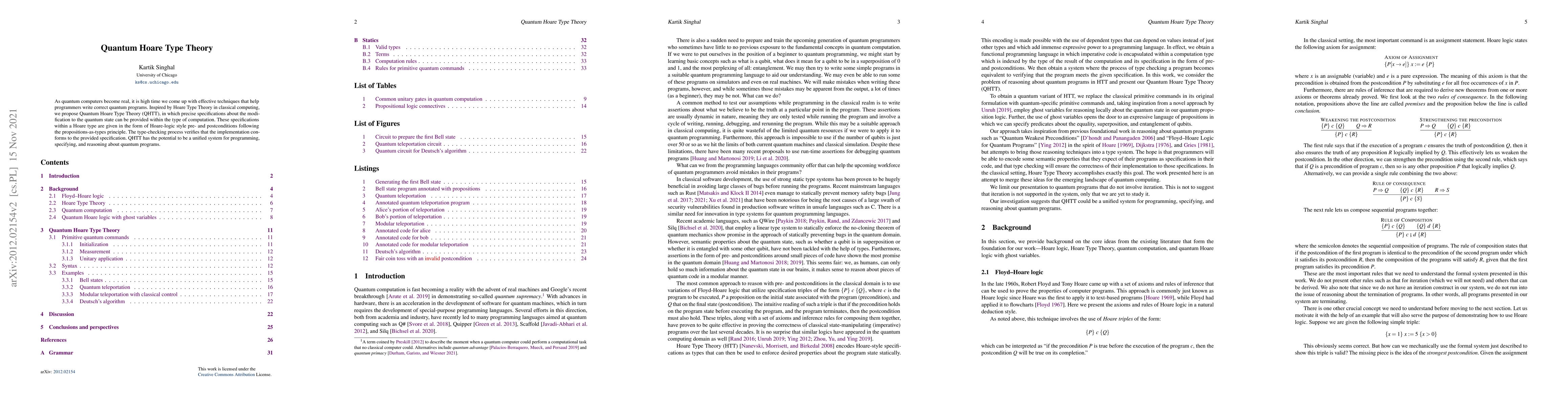 Quantum Hoare Type Theory (QHTT) proposes a new framework for specifying and verifying quantum programs using Hoare logic, ensuring precise specifications of quantum state modifications within the type system. The type-checking process guarantees that implementations conform to the provided specifications, aiming to unify programming, specification, and reasoning for quantum computing.