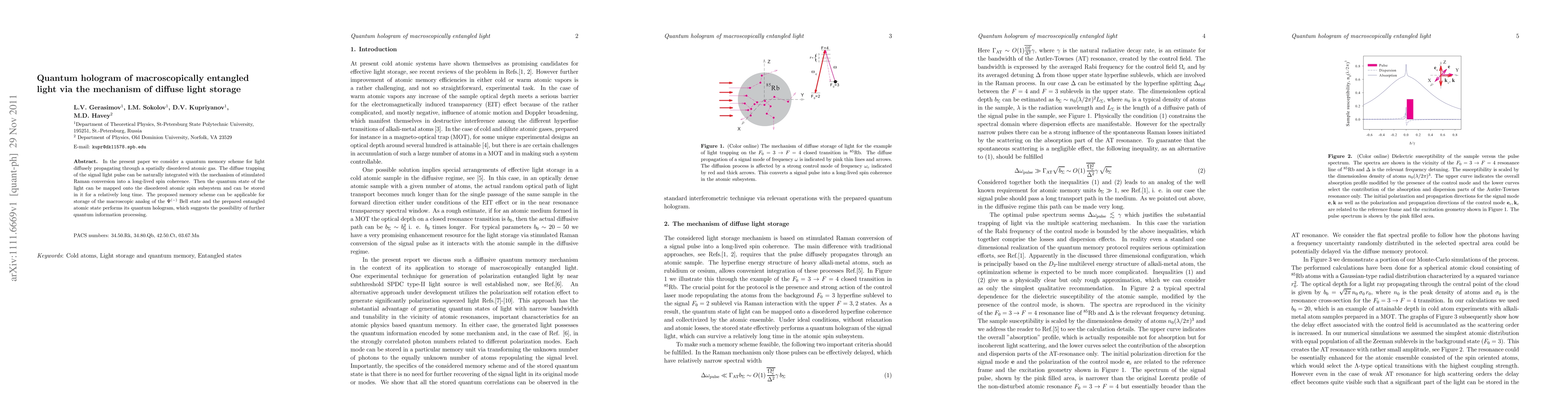 A new method for storing quantum information in a disordered atomic gas is proposed, allowing for the creation of macroscopic analogs of entangled light states. This enables potential future applications in quantum information processing.