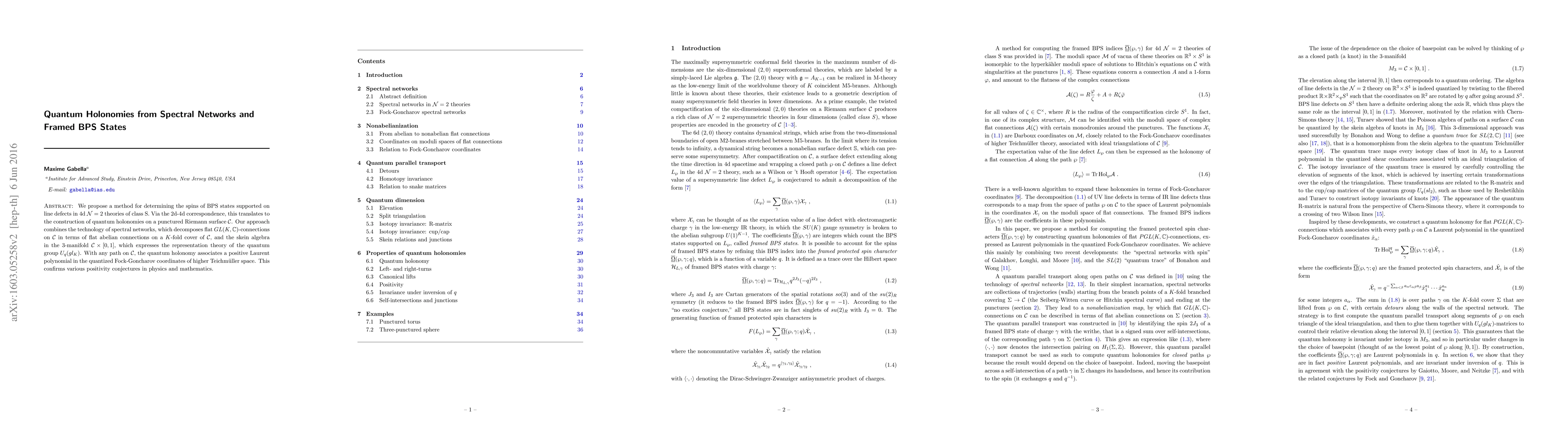 We propose a method for determining the spins of BPS states supported on line defects in 4d $\mathcal{N}=2$ theories of class S. Via the 2d-4d correspondence, this translates to the construction of quantum holonomies on a punctured Riemann surface $\mathcal{C}$. Our approach combines the technology of spectral networks, which decomposes flat $GL(K,\mathbb{C})$-connections on $\mathcal{C}$ in terms of flat abelian connections on a $K$-fold cover of $\mathcal{C}$, and the skein algebra in the 3-manifold $\mathcal{C}\times [0,1]$, which expresses the representation theory of the quantum group $U_q(gl_K)$. With any path on $\mathcal{C}$, the quantum holonomy associates a positive Laurent polynomial in the quantized Fock-Goncharov coordinates of higher Teichm\"uller space. This confirms various positivity conjectures in physics and mathematics.