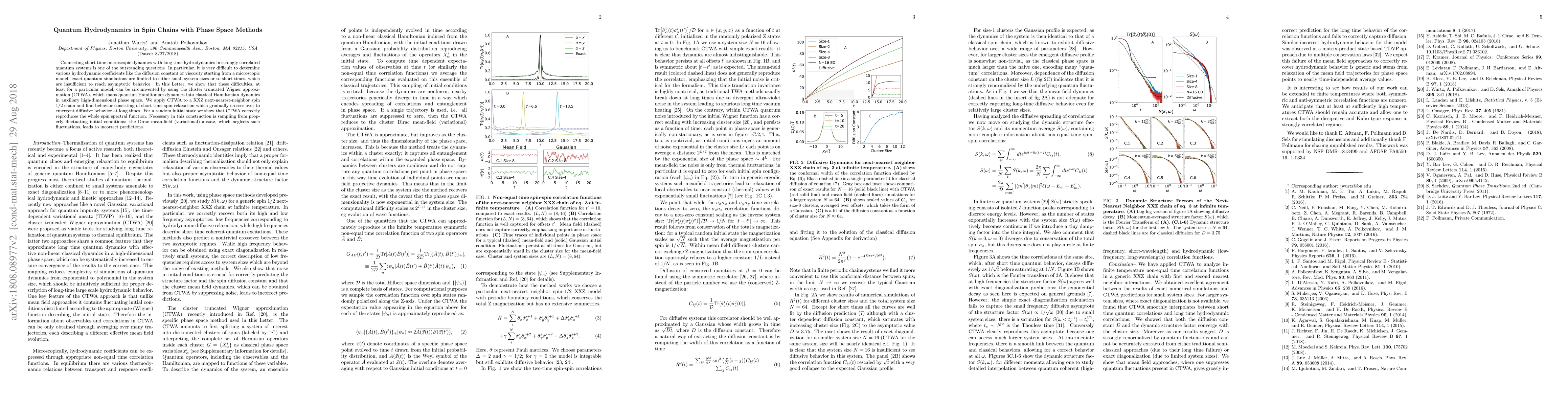 Researchers used a new method called cluster truncated Wigner approximation to study quantum spin chains, finding that it can connect short-term dynamics with long-term hydrodynamics. The method helped reproduce the spin spectral function for a random initial state, which is crucial for understanding quantum systems.