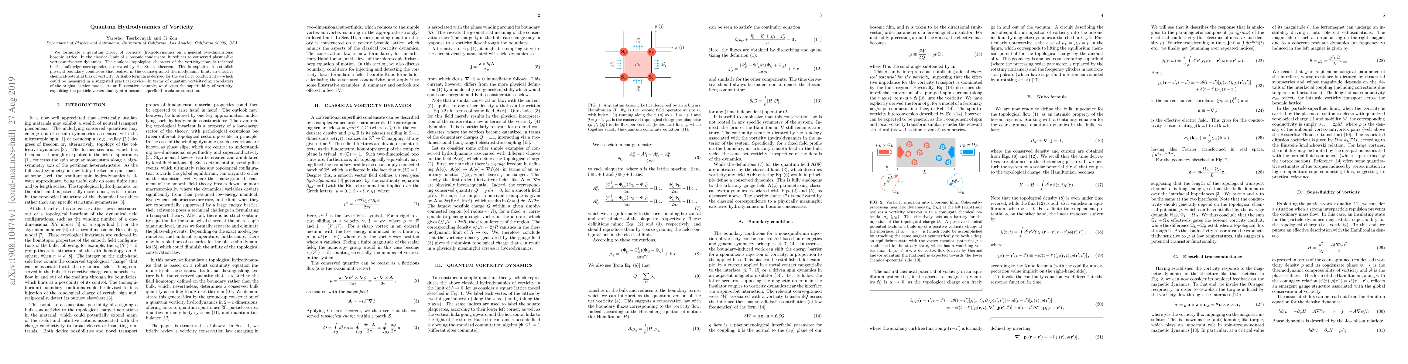 We formulate a quantum theory of vorticity (hydro)dynamics on a general two-dimensional bosonic lattice. In the classical limit of a bosonic condensate, it reduces to conserved plasma-like vortex-antivortex dynamics. The nonlocal topological character of the vorticity flows is reflected in the bulk-edge correspondence dictated by the Stokes theorem. This is exploited to establish physical boundary conditions that realize, in the coarse-grained thermodynamic limit, an effective chemical-potential bias of vorticity. A Kubo formula is derived for the vorticity conductivity|which could be measured in a suggested practical device|in terms of quantum vorticity-flux correlators of the original lattice model. As an illustrative example, we discuss the superfluidity of vorticity, exploiting the particle-vortex duality at a bosonic superfluid-insulator transition.