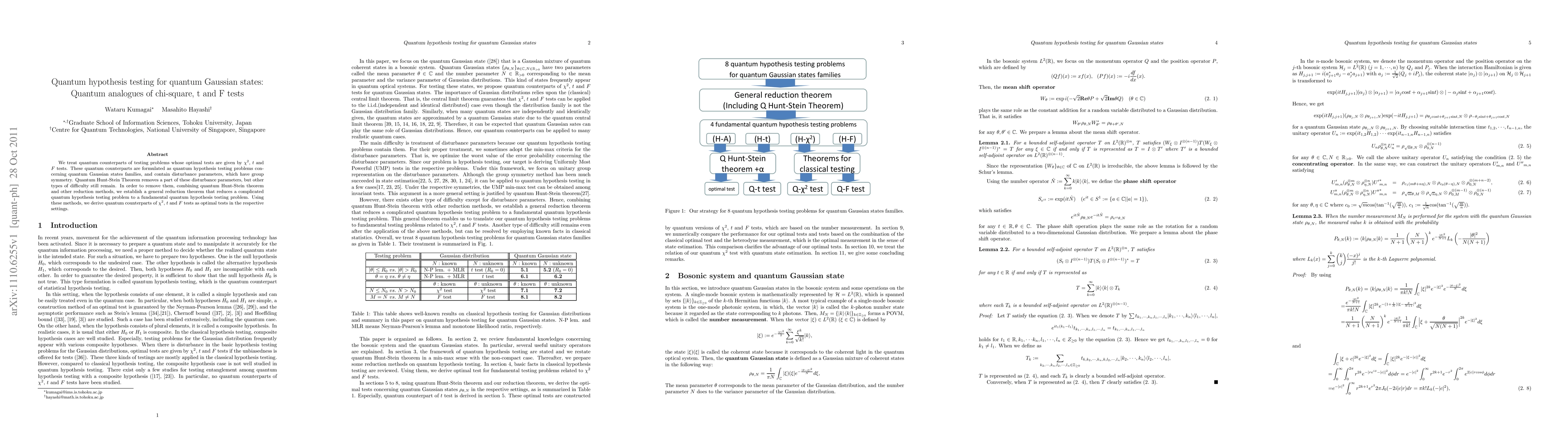This paper develops quantum analogues of classical chi-square, t, and F tests for quantum Gaussian states. It establishes a reduction theorem to simplify complex quantum hypothesis testing problems, ultimately deriving optimal quantum tests for these statistical problems.