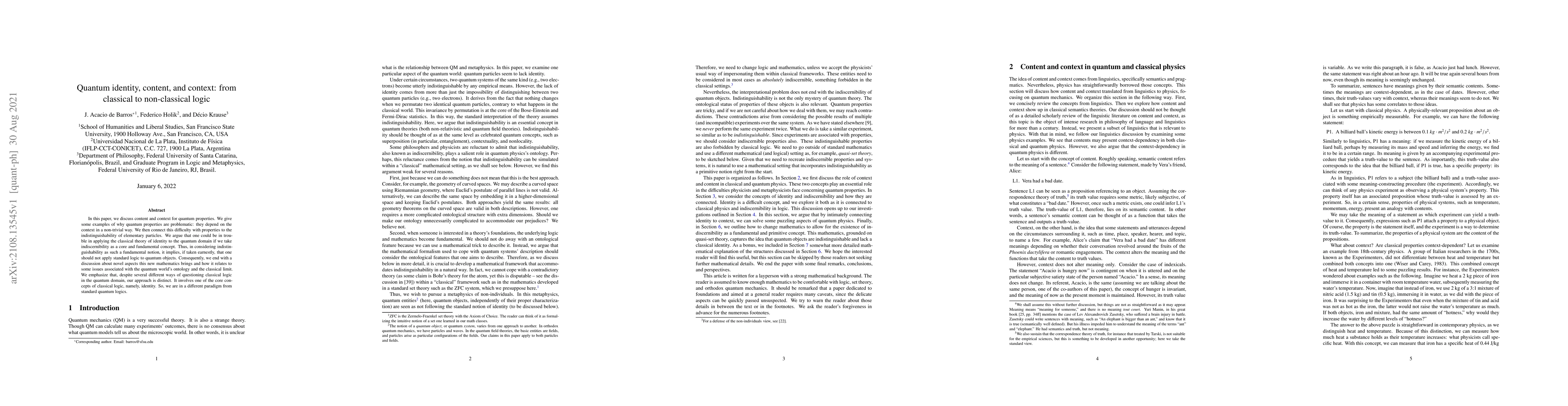 This paper explores the challenges of applying classical identity theory to quantum properties, highlighting the context-dependent nature of quantum phenomena and the indistinguishability of elementary particles. It argues for a shift away from classical logic to accommodate these quantum peculiarities, proposing a distinct approach that diverges from standard quantum logics.