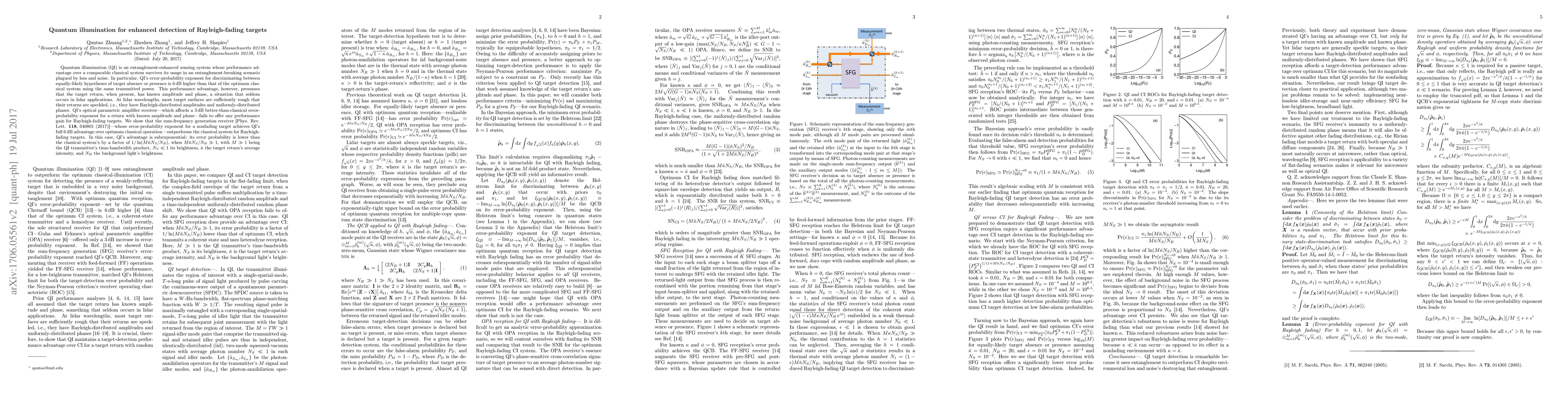 Quantum illumination outperforms classical systems for detecting Rayleigh-fading targets, achieving a subexponential advantage in error probability when target returns are speckled, but not when phase is known.