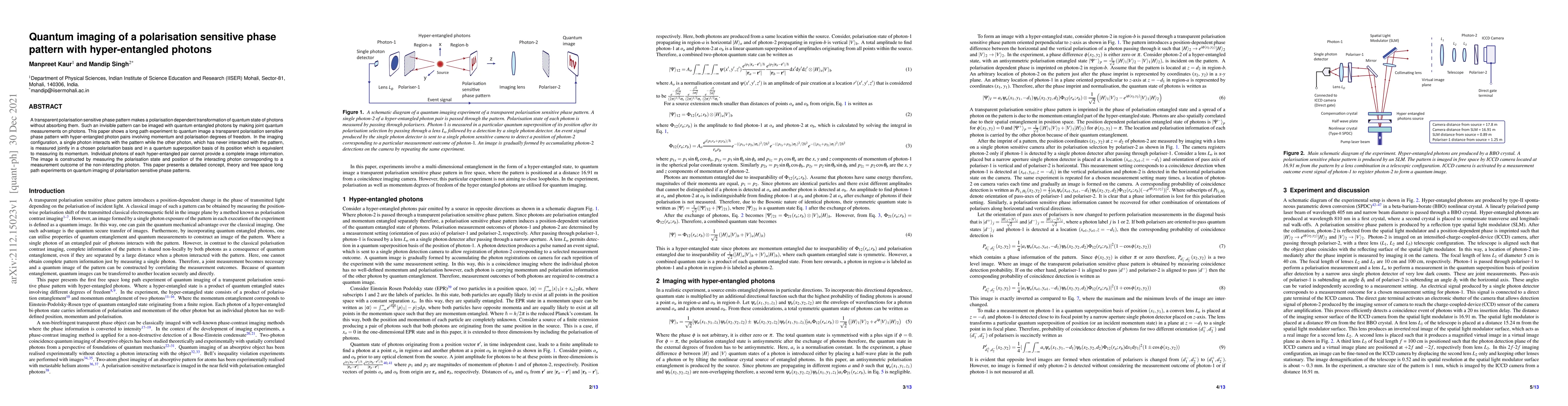 This paper demonstrates quantum imaging of a polarisation sensitive phase pattern using hyper-entangled photon pairs, where a single photon interacts with the pattern while the other is measured jointly to reconstruct the image. The method relies on joint quantum measurements to extract complete image information from the entangled pair.