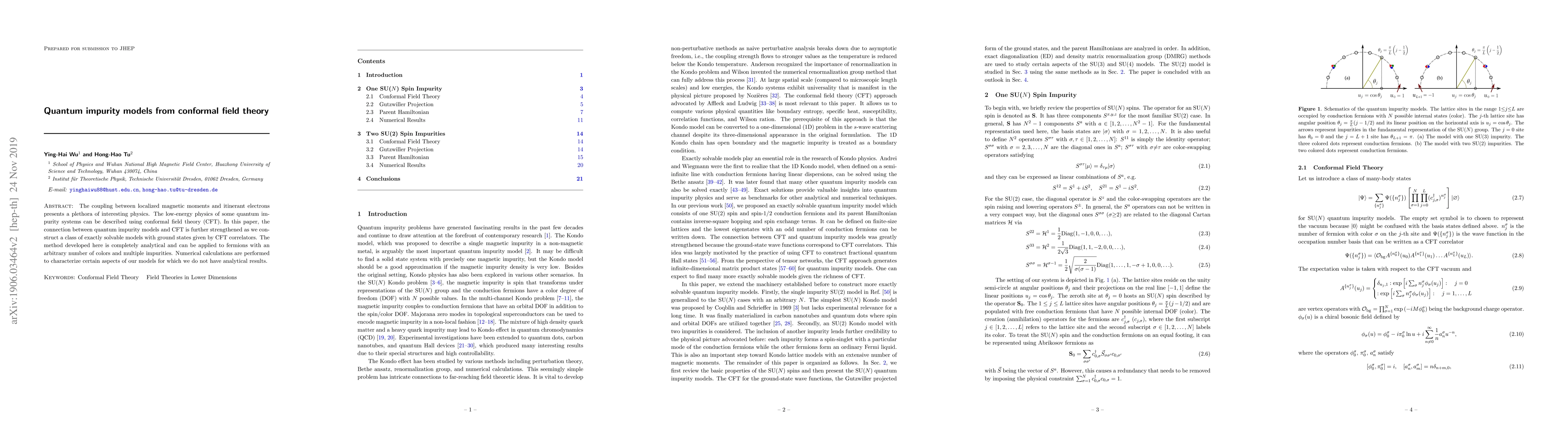 This paper establishes a connection between quantum impurity models and conformal field theory (CFT), constructing analytically solvable models with ground states described by CFT correlators. Numerical calculations supplement the analytical findings for certain model aspects lacking analytical solutions.
