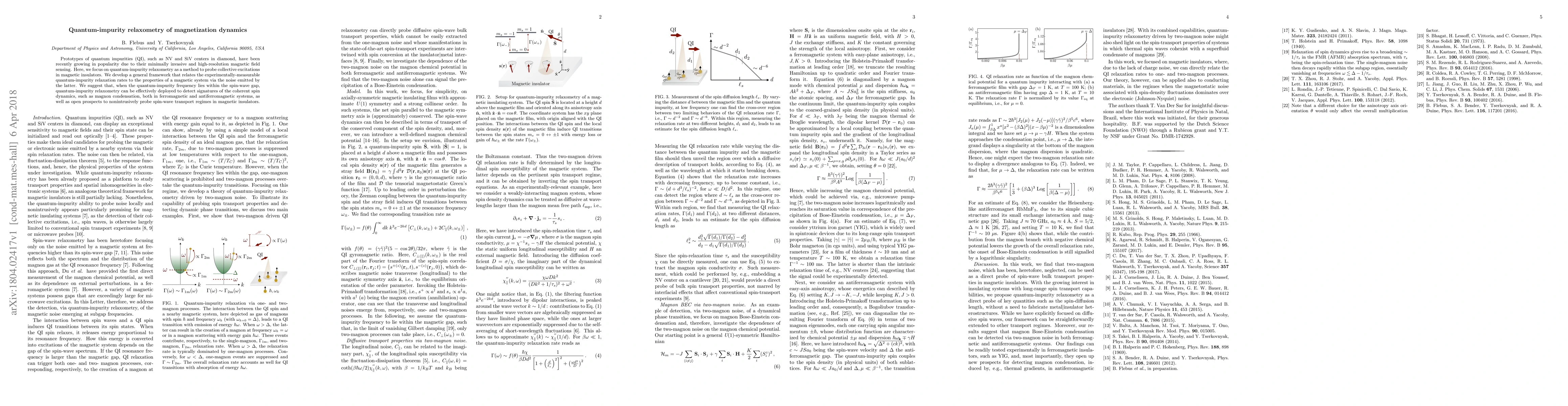 This paper develops a quantum-impurity relaxometry framework to study magnetization dynamics in magnetic insulators, linking impurity relaxation rates to the magnetic system's properties through emitted noise. It suggests that this method can detect coherent spin dynamics, including magnon condensation, in both ferromagnetic and antiferromagnetic systems.