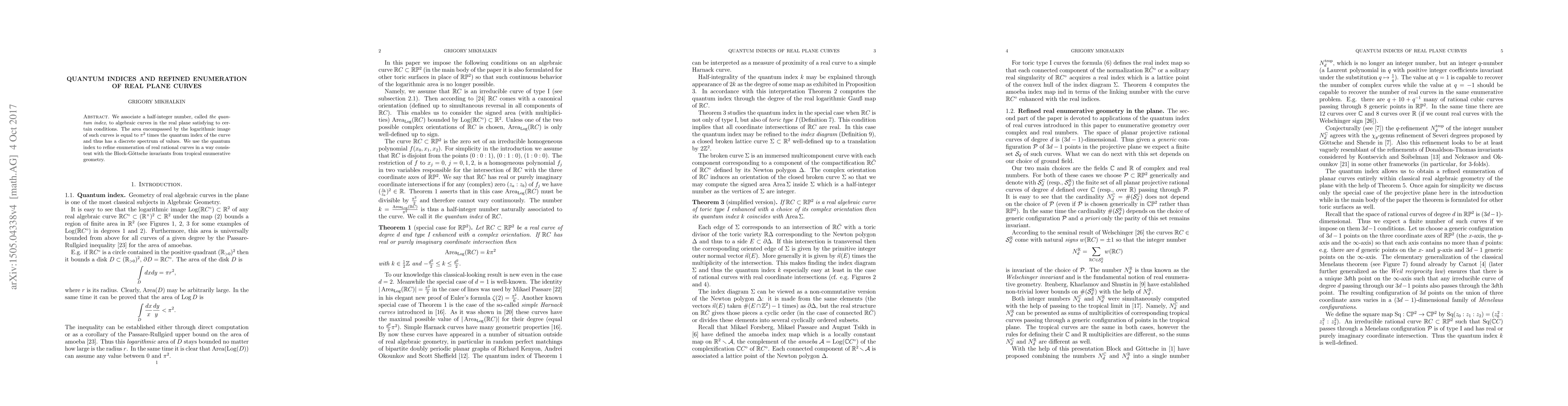We associate a half-integer number, called {\em the quantum index}, to algebraic curves in the real plane satisfying to certain conditions. The area encompassed by the logarithmic image of such curves is equal to $\pi^2$ times the quantum index of the curve and thus has a discrete spectrum of values. We use the quantum index to refine real enumerative geometry in a way consistent with the Block-G\"ottsche invariants from tropical enumerative geometry.
