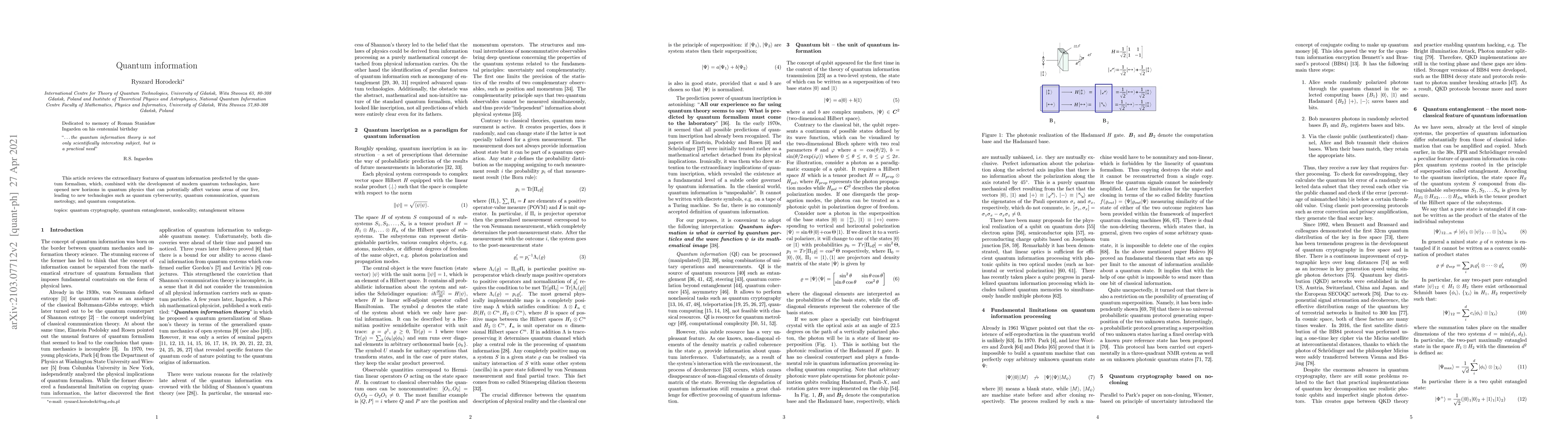 This article reviews the extraordinary features of quantum information predicted by the quantum formalism, which, combined with the development of modern quantum technologies, have opened new horizons in quantum physics that can potentially affect various areas of our live, leading to new technologies such as quantum cybersecurity, quantum communication, quantum metrology, and quantum computation.