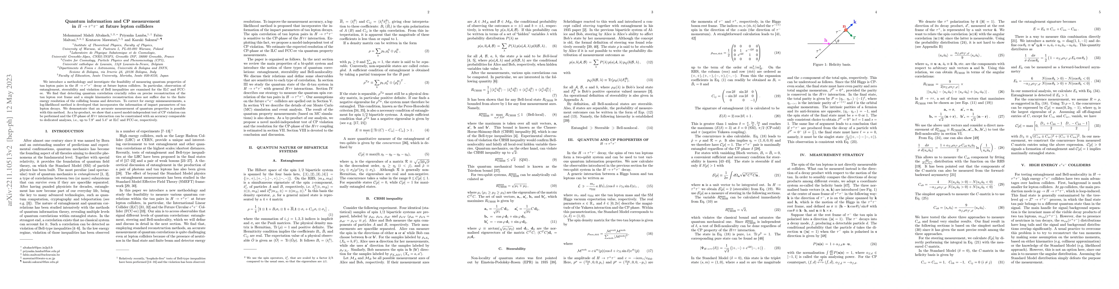 This paper proposes a methodology to measure quantum properties in $H \to \tau^+ \tau^-$ decays at future lepton colliders, focusing on entanglement, steerability, and Bell inequalities. It finds that precise reconstruction of tau lepton rest frames is essential, and introduces a log-likelihood method to correct for energy mismeasurements, enabling accurate quantum property detection and a new model-independent test of CP violation.