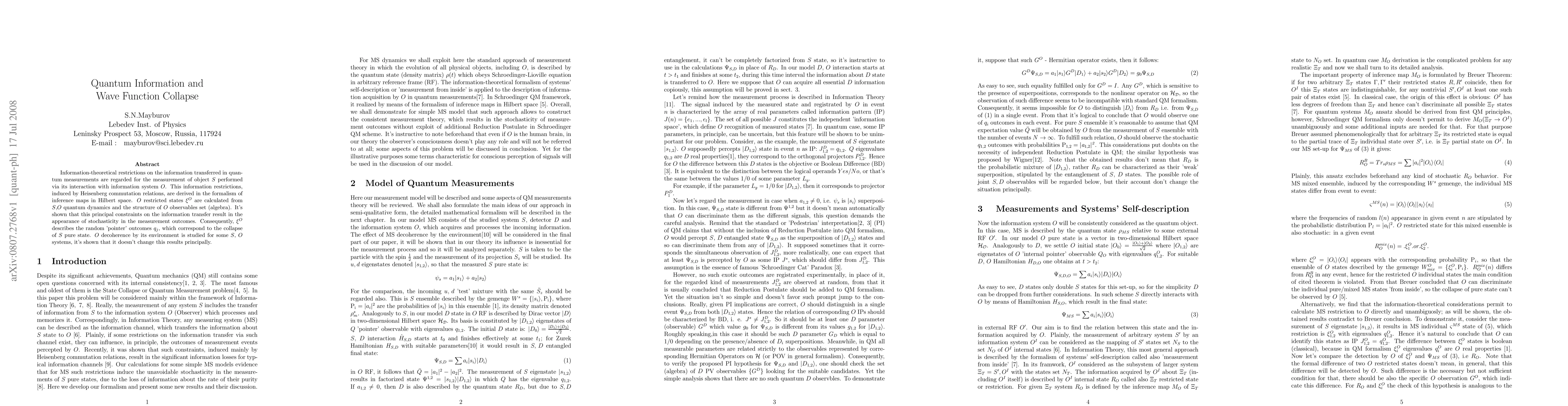 This paper explores the information-theoretical limits on measuring object S using system O, revealing that Heisenberg commutation relations lead to the loss of information about S's state purity, making it impossible to distinguish pure from mixed states, which results in the stochastic collapse of pure S state measurements.